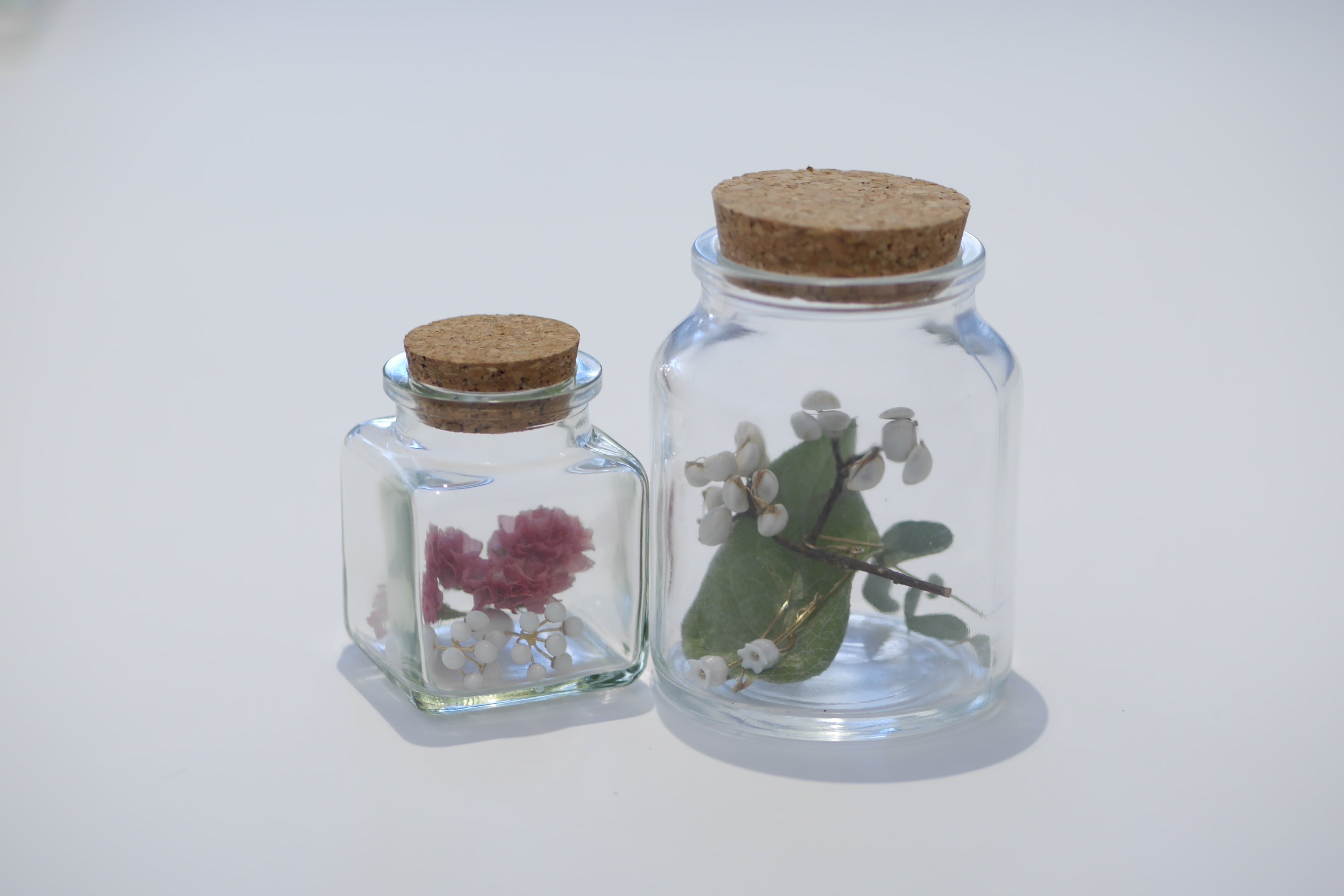Koichimatsumotoの作品はアクセサリーケースにも楽しみがあります。ケースというとよく見かけるのは箱のタイプのものですが、Koichimatsumotoのジュエリーをお買い上げいただくとドライフラワー入りのガラス瓶に入れてお届けします。(花の種類、瓶のサイズはランダムとなります)