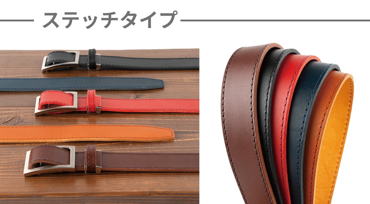 レザーベルトを楽しんでお選びいただくために「3デザイン」「5カラー」の15通りをご用意しました。