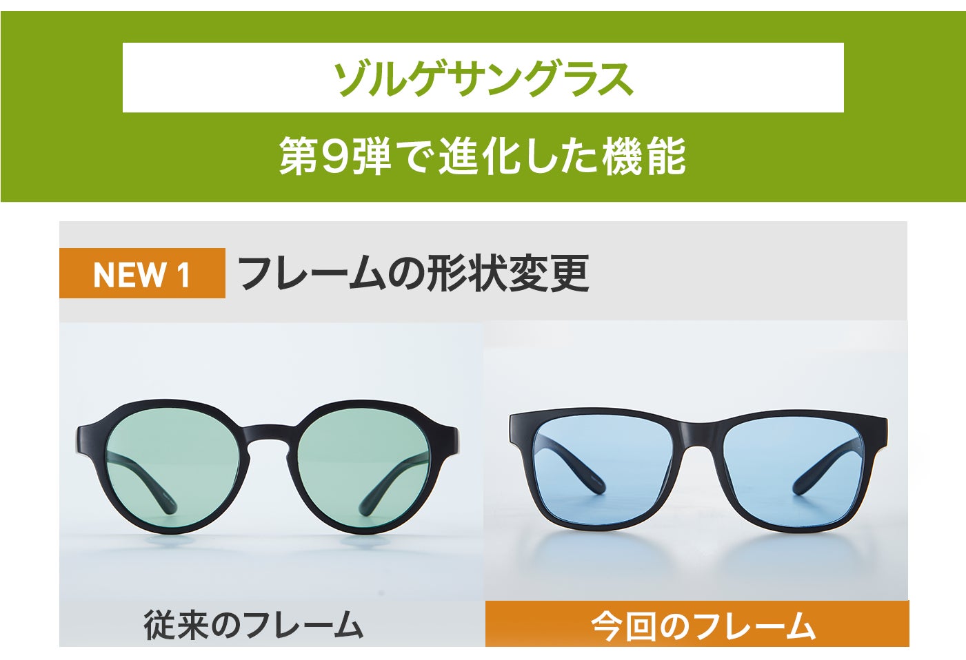 第9弾のアウトドアサングラスのフレームは、ウェリントンを採用。