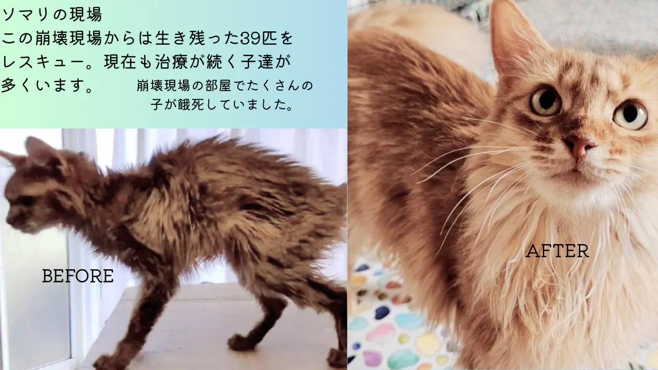 2025年4月から、私たちは深刻な多頭飼育崩壊現場からの猫のレスキュー活動を続けています。そこで出会った猫たちは、言葉を失うほど悲惨な状況でした。