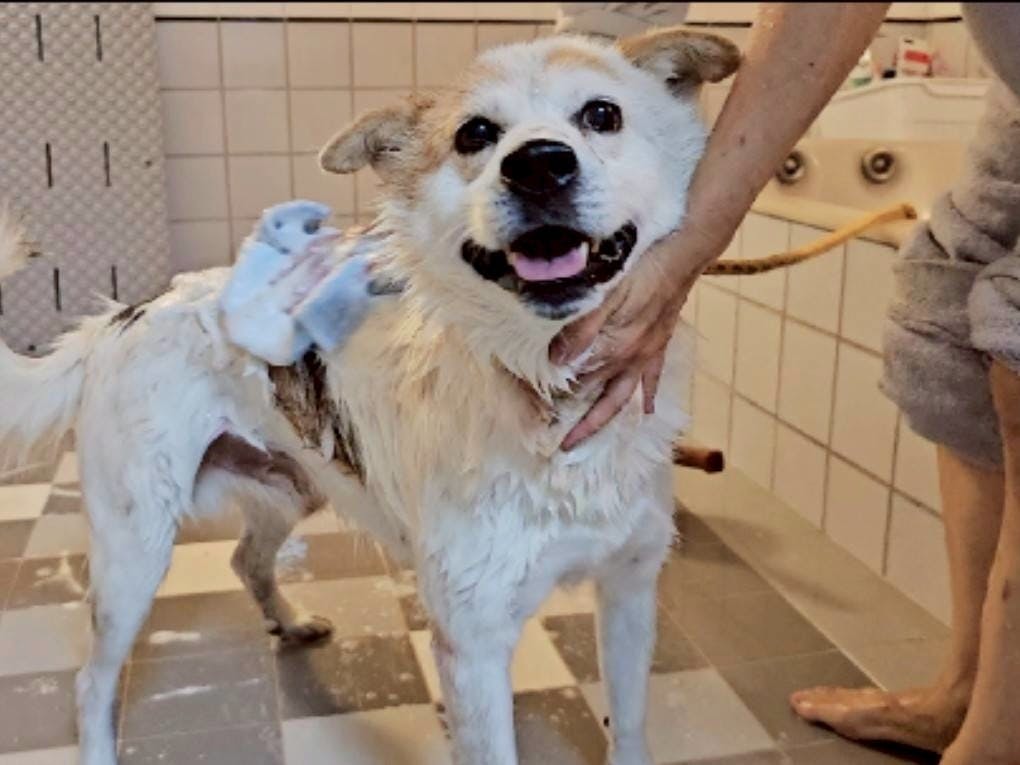 早速、カツオをシャンプーし、体もスッキリ!カツオが嬉しそうでたんぽぽママも思わず笑顔に☺︎