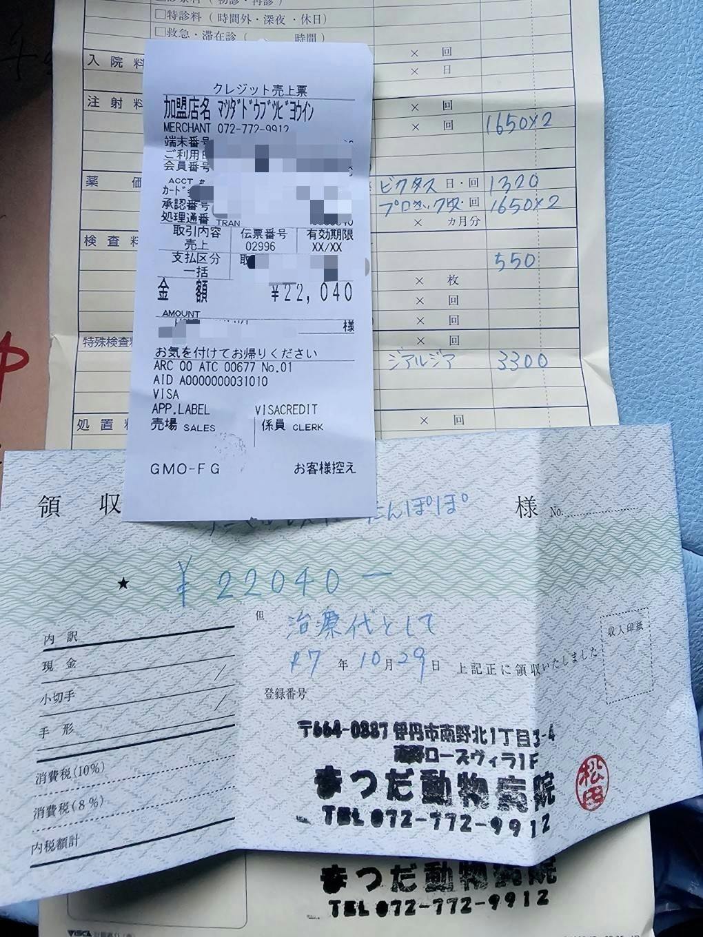 最後にカツオの医療費と通院中の子の領収証を公開します。