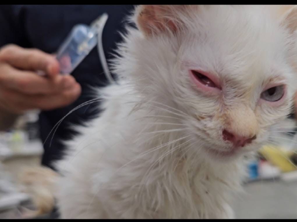 金曜日に保護した仔猫の風邪が重症の為、今日も病院でインターフェロン含め出来る限りの治療をしました。自力では一切食べないので強制給餌を続けています。