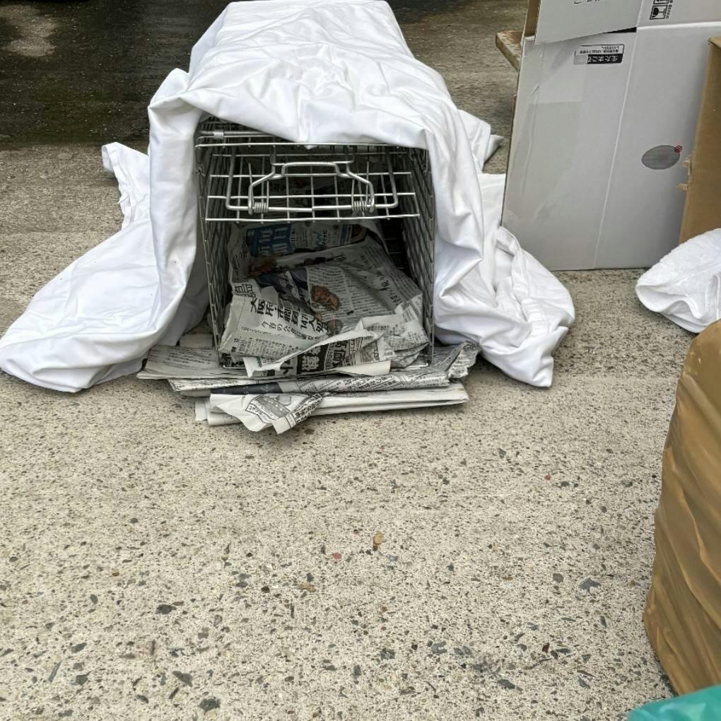 ガリガリに痩せて弱った野良猫がいるとの通報で捕獲に走りました。しかし猫は現れず民家の敷地に捕獲器を設置させて頂きました。通報者が1時間おきに確認に行っています。食欲が無ければ捕獲器には入らない為、現れたら網で捕獲します。どこかで倒れず現れてくれる事を祈ります