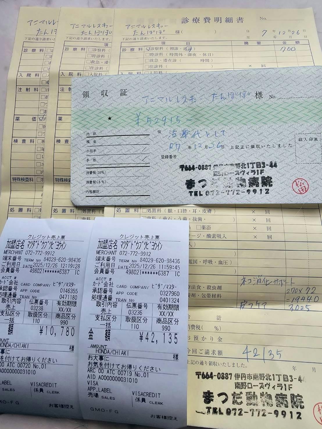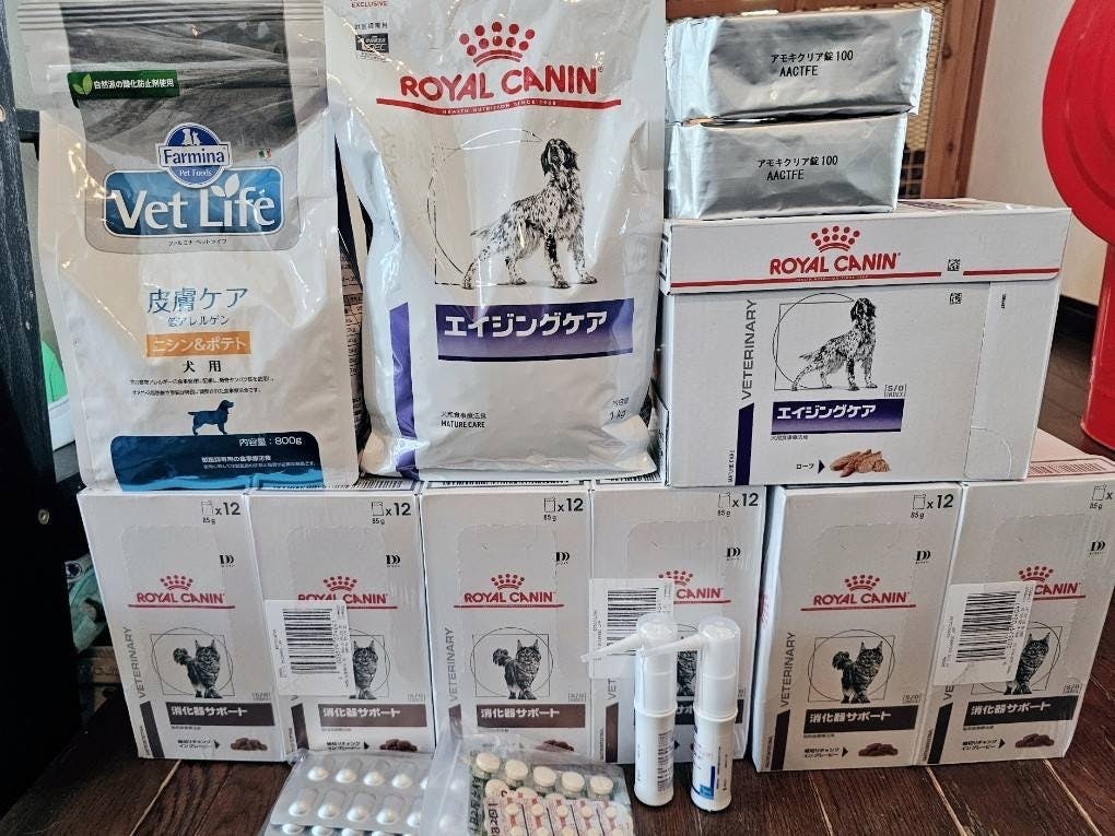 連休に入る前に治療と共に犬猫たちの毎日の医療フードと薬の購入に来ました。心臓、腎臓、腸疾患の子達は終生に渡り薬と医療食が必要な為、里親に出るのは難しく終生保護が大半です。当団体は医療と共にフードを大切に考えており元気な子達にもプレミアムフードのみを使用しています