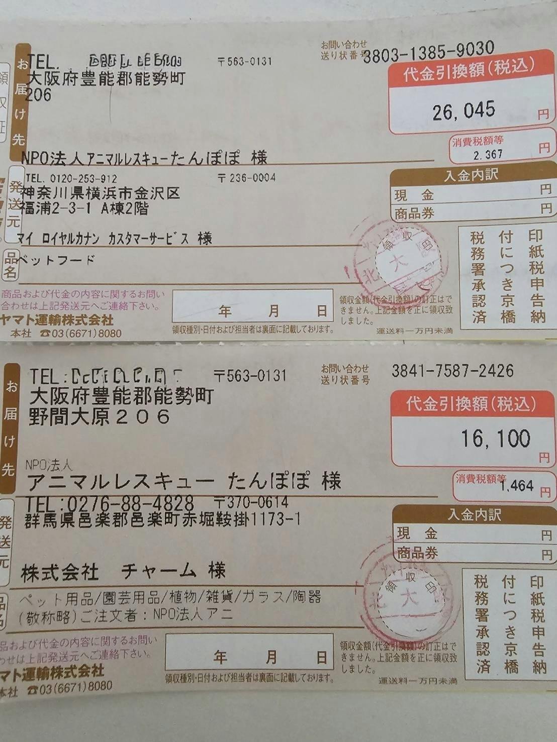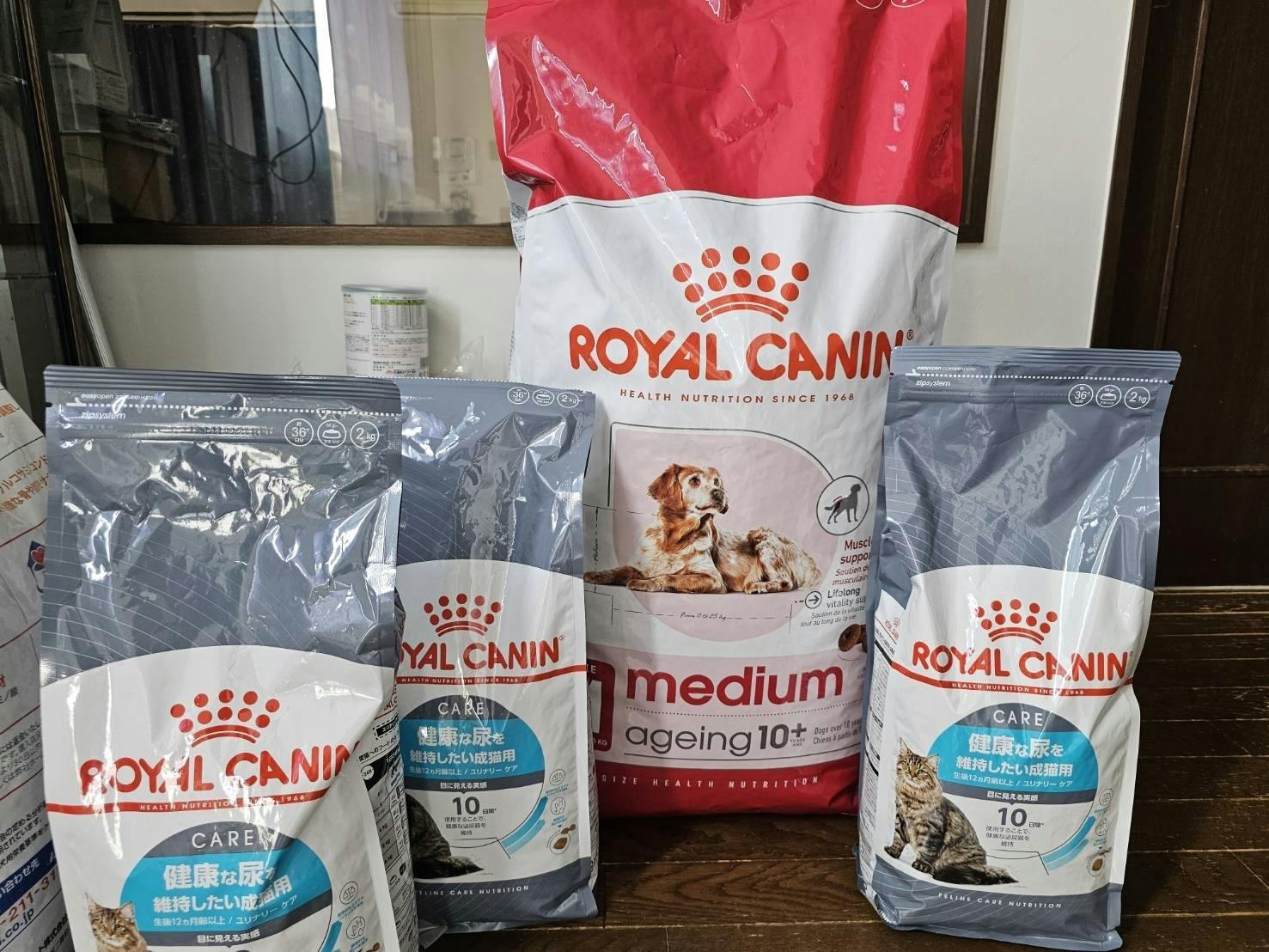 野犬、野良猫、保健所からレスキューした子供たちの医療フードとプレミアムフード、42145円分をロイヤルカナンより購入させて頂きました。大量に消費するので犬用は15kgを購入しています。毎日食べるフードは大切で質の良いものを使用しています٩( ᐛ )و