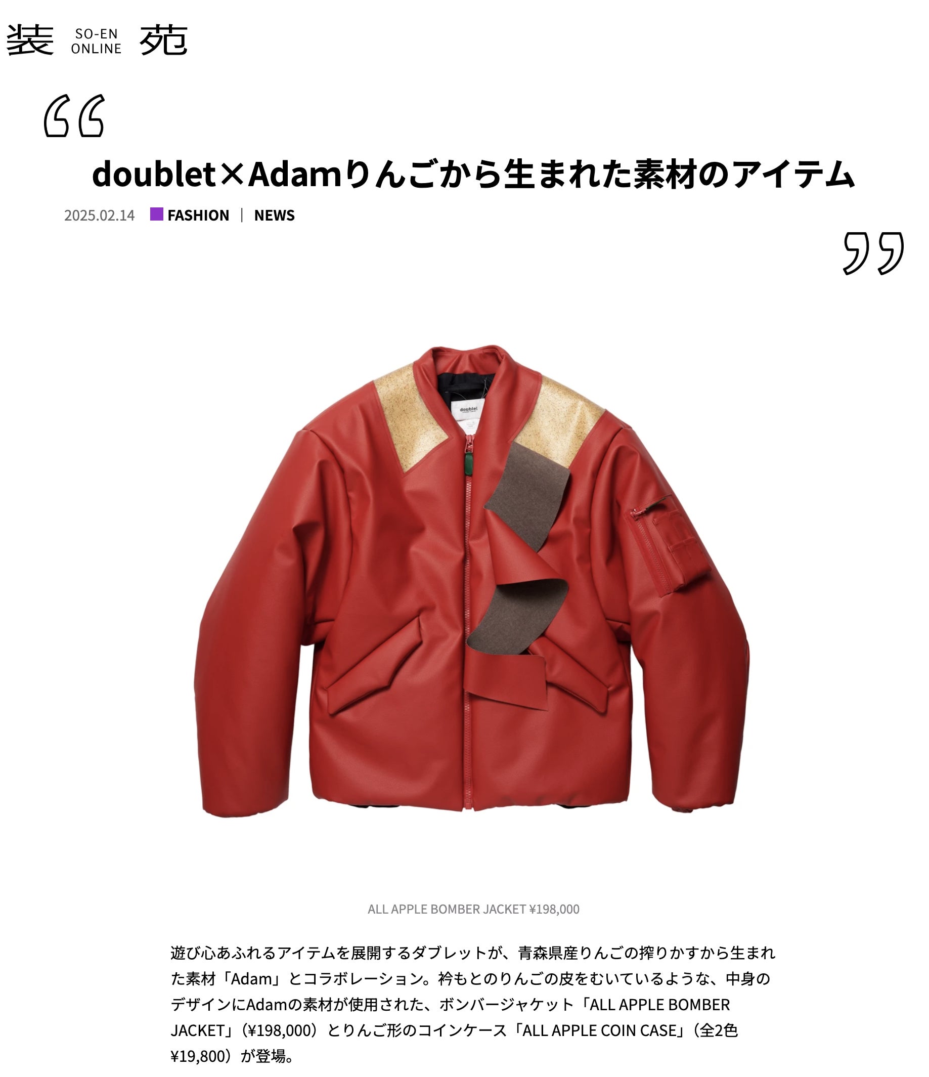 しかし同時に、その背景には「りんごの搾りかすの廃棄」という大きな課題もあることを分かり、この出会いが、素材開発「Adam」のプロジェクトにつながりました。