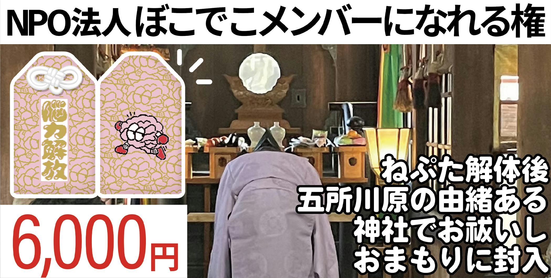 ① NPO法人ぼこでこ賛助会員になれる権(1年間)+脳力解放守り(先着50名)