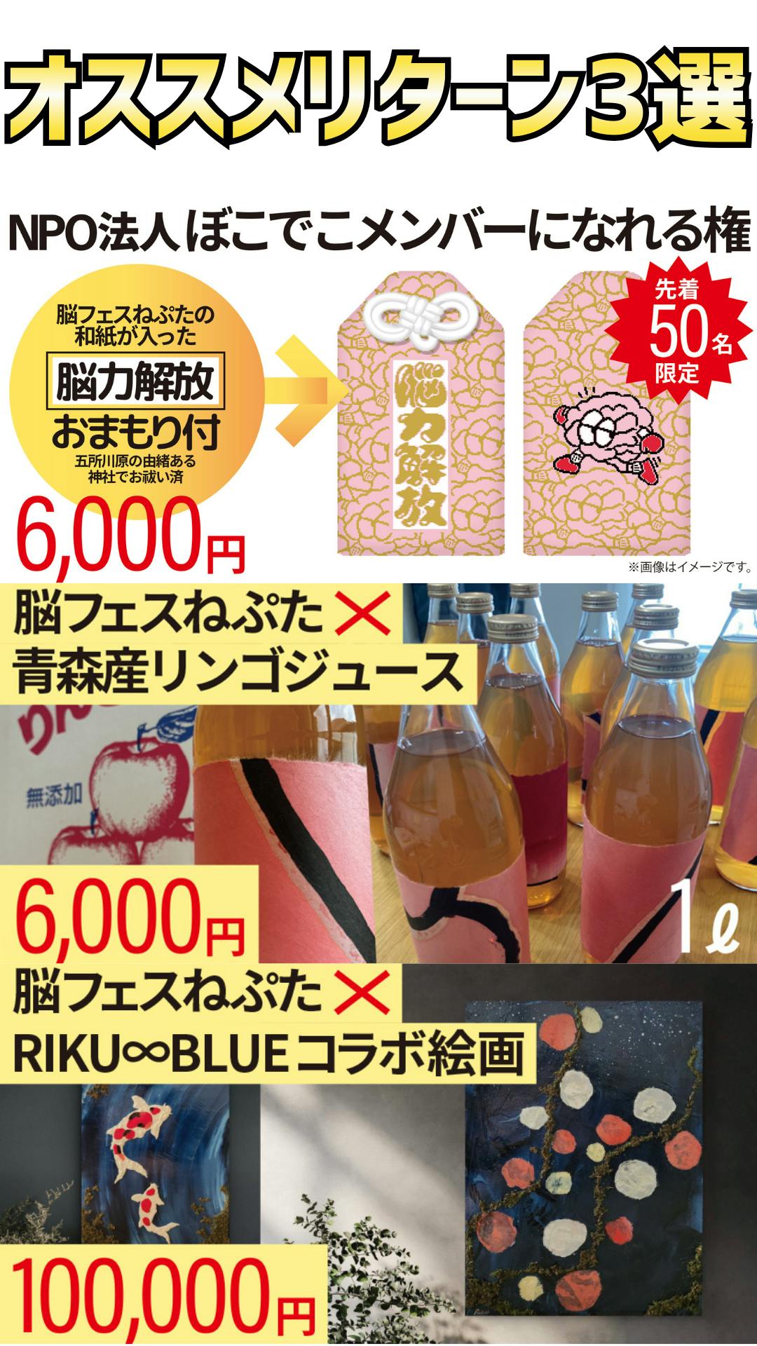 - ・青森の神社でご祈祷済み「脳力解放守り」(脳フェスねぷたの紙入り)1つ