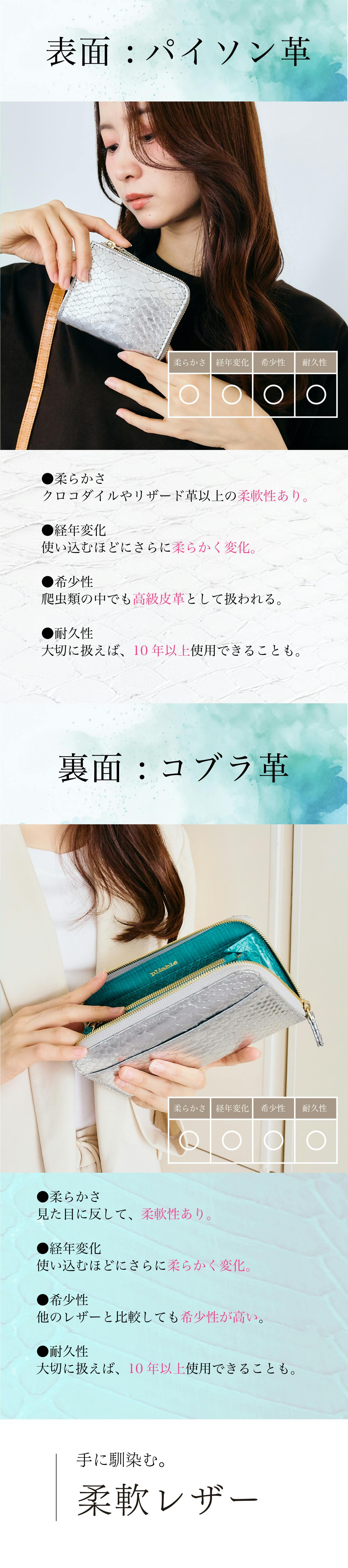 成熟した感性に寄り添う、静かな誇りをまとう財布。シルバーパイソン × ブルーコブラ。素材から美を育てました。