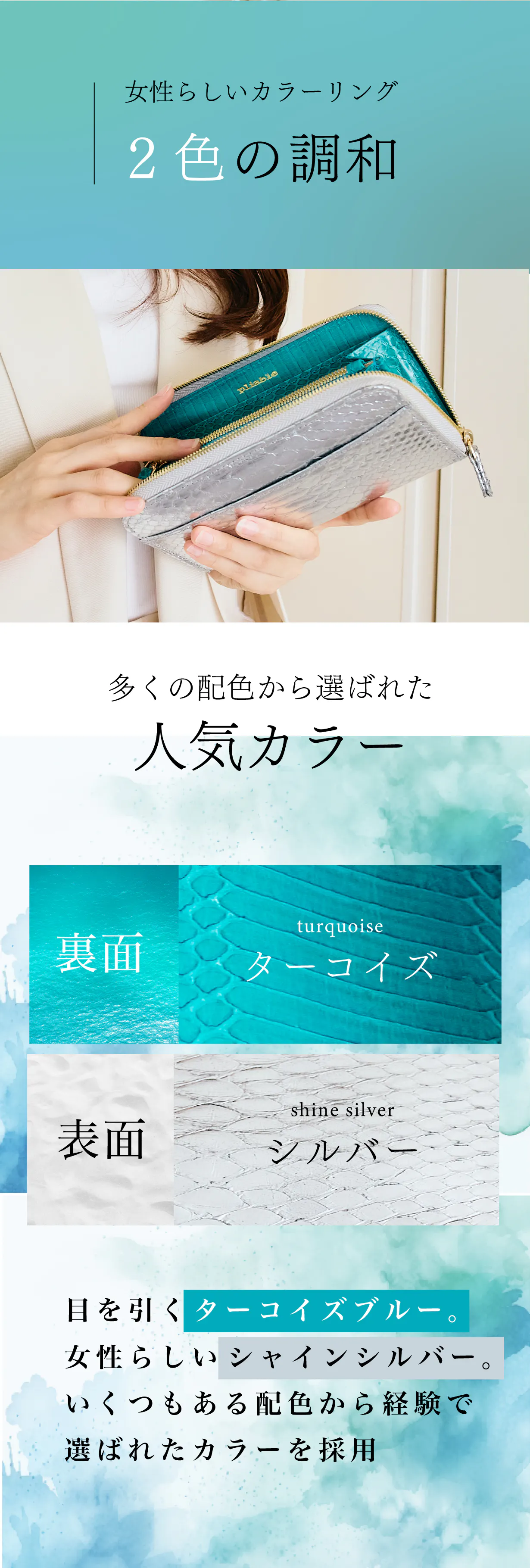 本製品はターコイズブルーで華やかにアップデートしています、開けた時に気分が上がる。