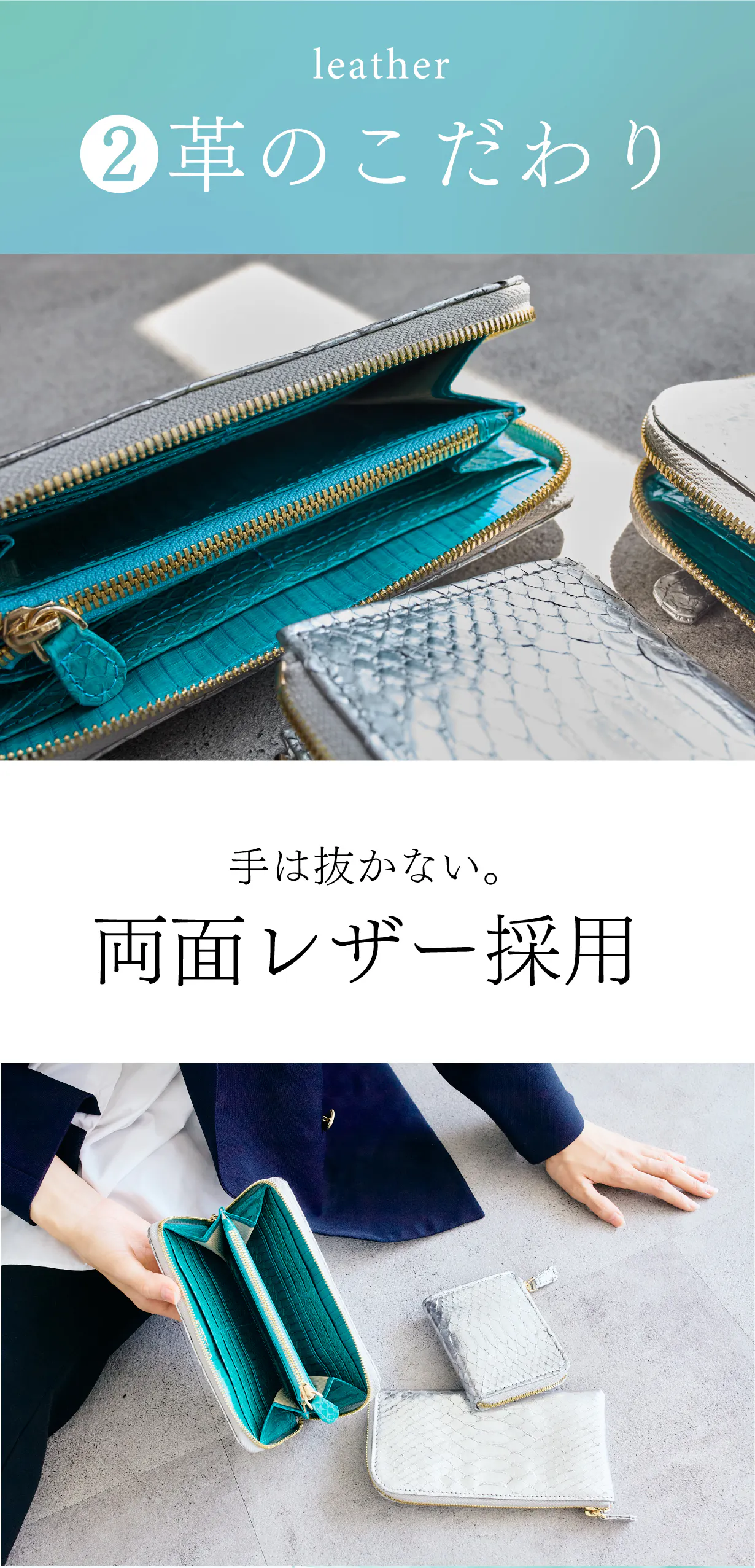 しかし、本製品は裏地にもエキゾチックレザーであるコブラ革を採用しています。