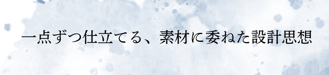 製品は過度な装飾を排し、素材そのものが主役となるよう設計されています。 使い手の価値観に委ねることで、製品は完成形ではなく「共創の器」となります。