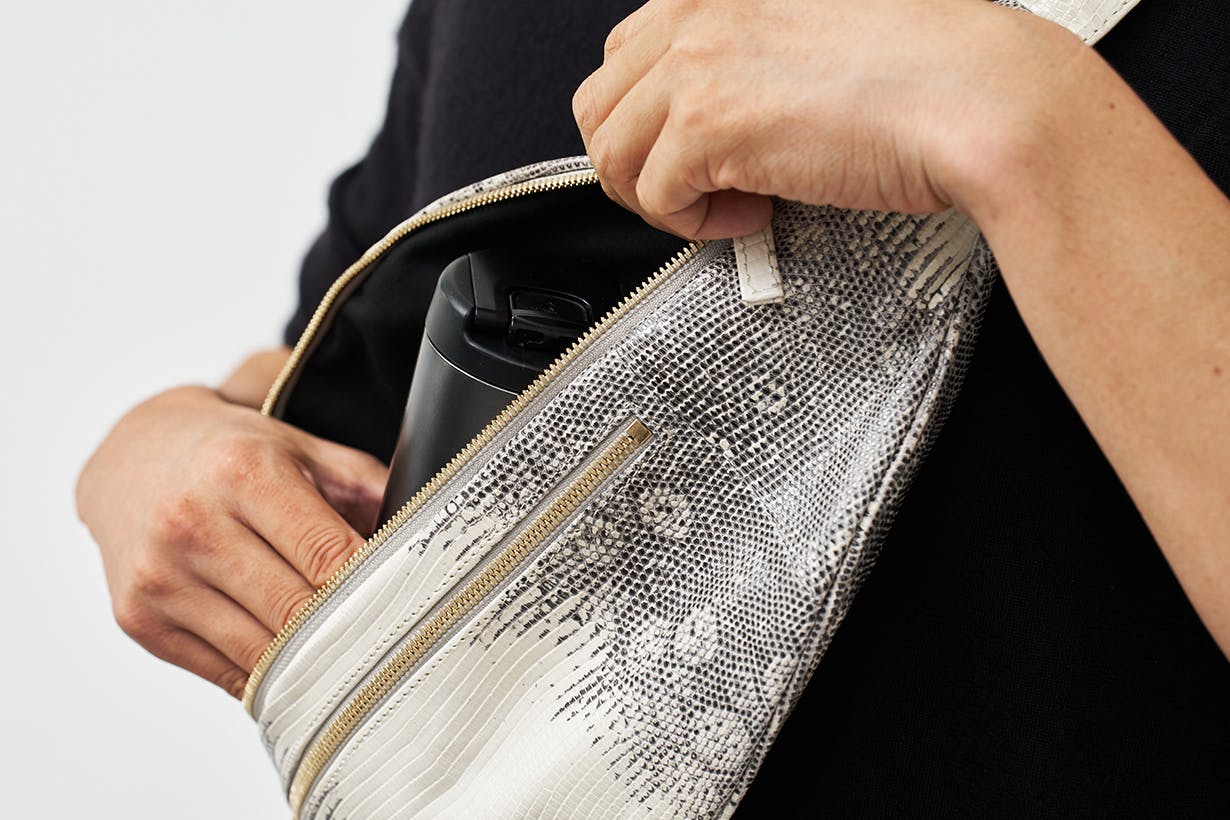バッグの設計は、素材の個性だけでなく、使い手の生活にも応じています。 開口部の広さ、マチの深さ、ファスナーの配置––それらはすべて、収容力と操作性を両立させるための構造です。