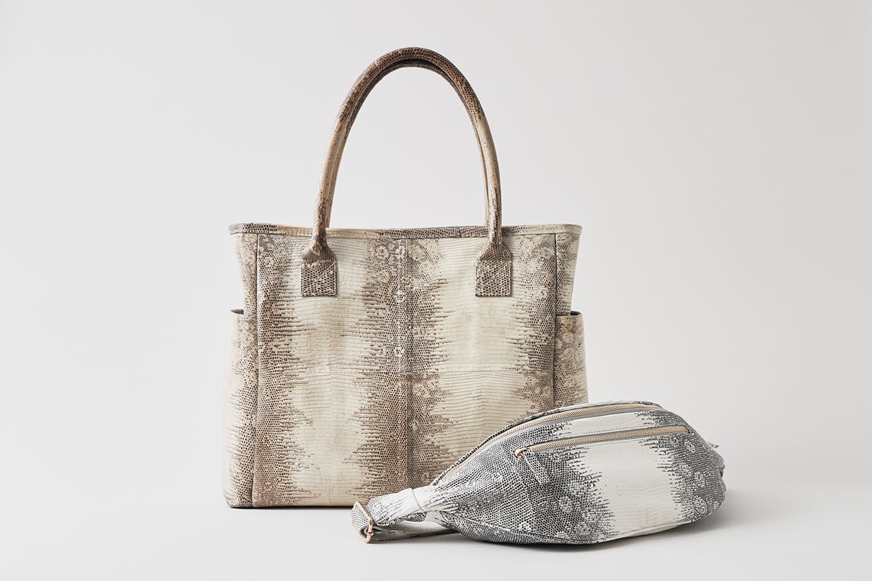 その一方で、本プロジェクトが選んだのは「ヒマラヤリザード」。粒状の鱗と天然のグラデーションが織りなす繊細な揺らぎ––それは、素材の声に耳を傾ける設計思想と深く響き合います。