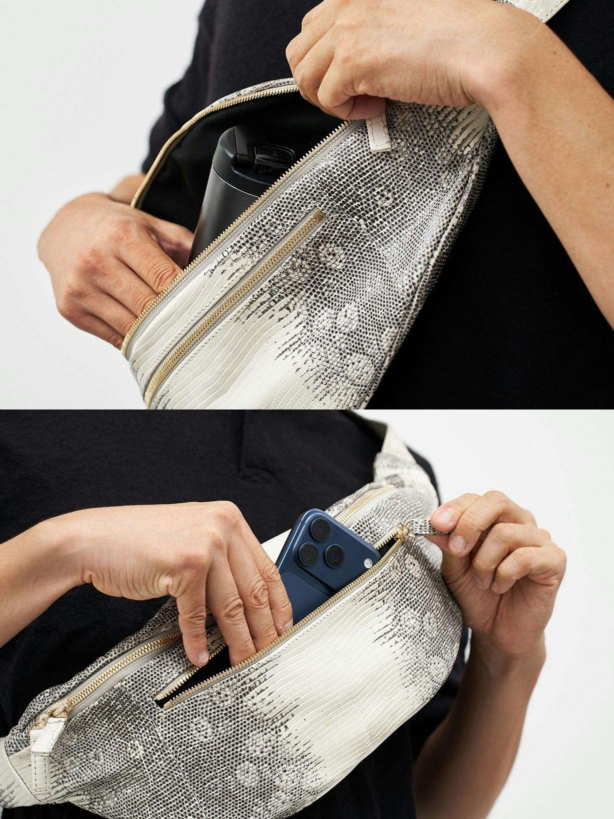 バッグの設計は、素材の個性だけでなく、使い手の生活にも応じています。 開口部の広さ、マチの深さ、ファスナーの配置––それらはすべて、収容力と操作性を両立させるための構造です。