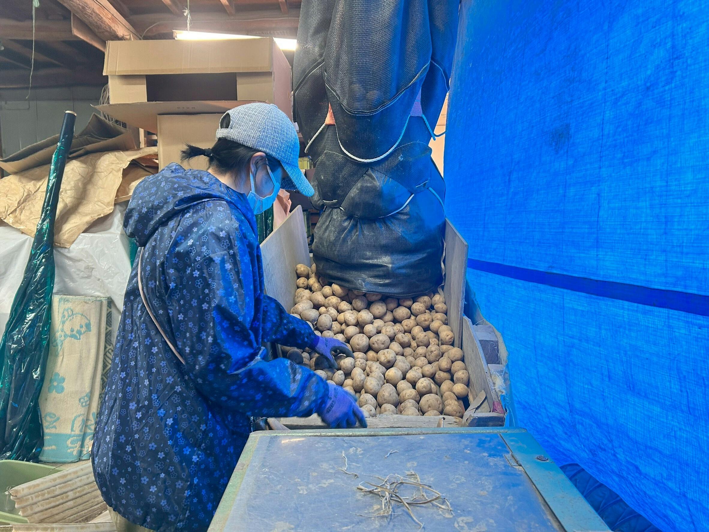 とても根気のいる作業ですが、おいしいじゃがいもを食べてほしいという一心で選別しています。