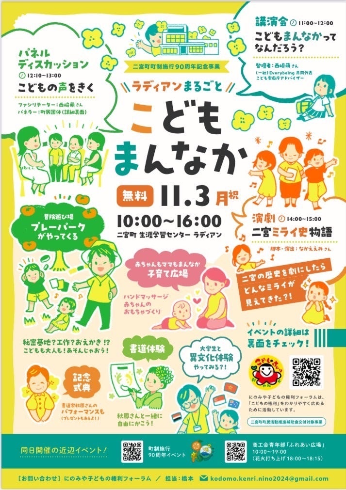 *当日、二宮町生涯学習センターラディアンでは「ラディアンまるごとこどもまんなか」をテーマに、各種イベント開催します。(10時~16時)