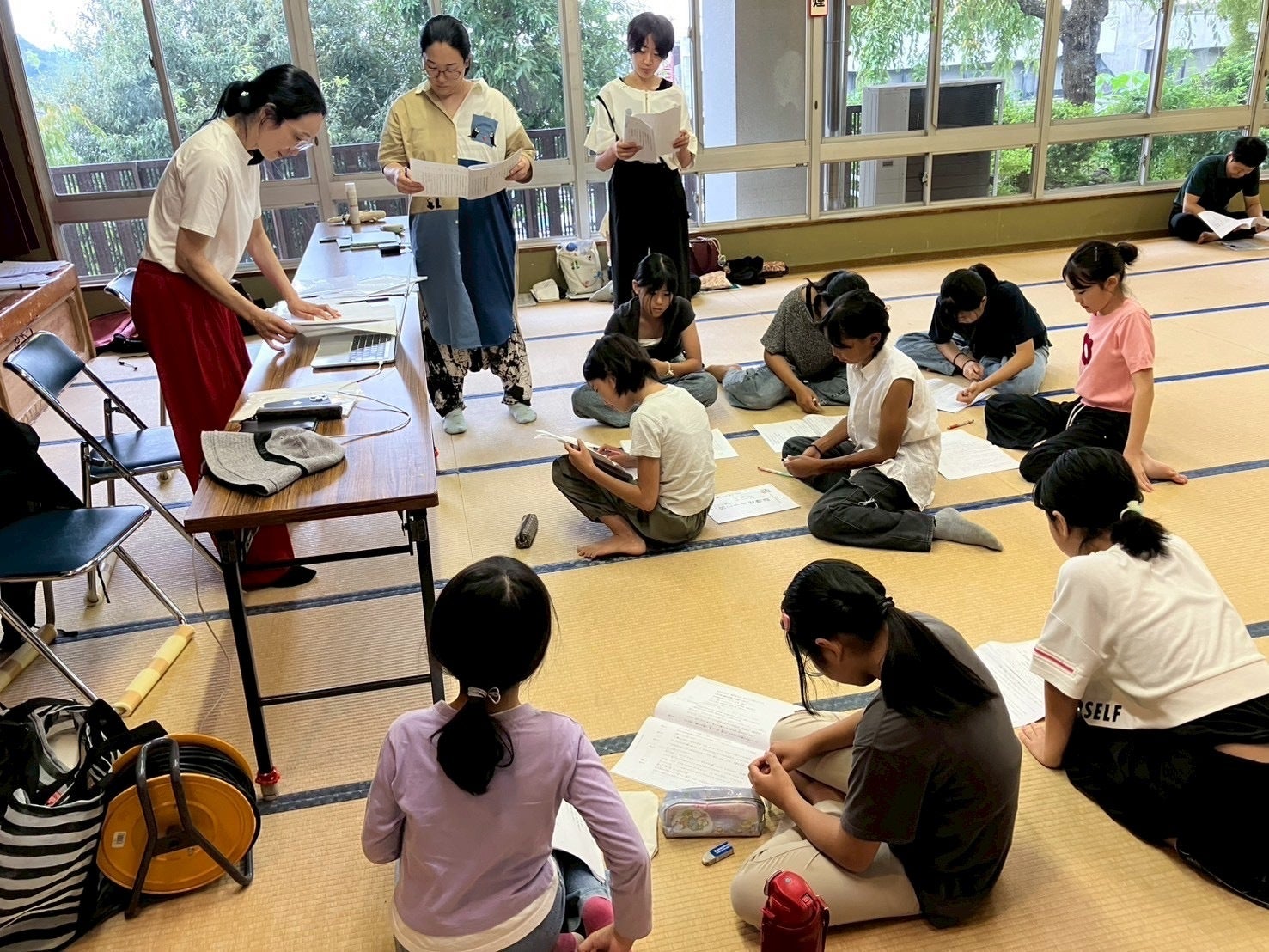 スタッフも二宮の皆さま。稽古中には窓の外を学校の先生が通ったり、和気藹々の時間はあっという間に過ぎていきます。