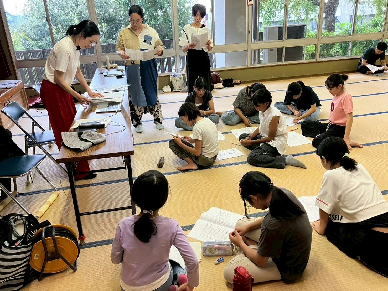 二宮町の皆さんがご協力くださり、こども達との公演稽古が進み、先日夏休みの通い合宿を行いました。配役やパートも決まり、本番に向けて盛り上がっています。