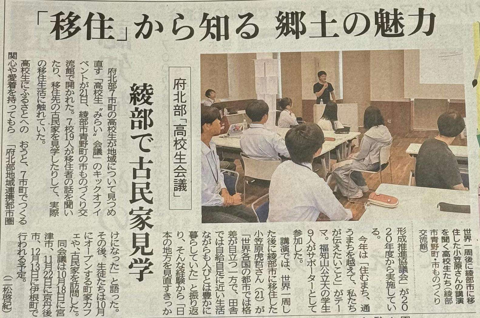 毎日新聞/京都新聞に掲載いただきました。(紙面写真を添付しています)