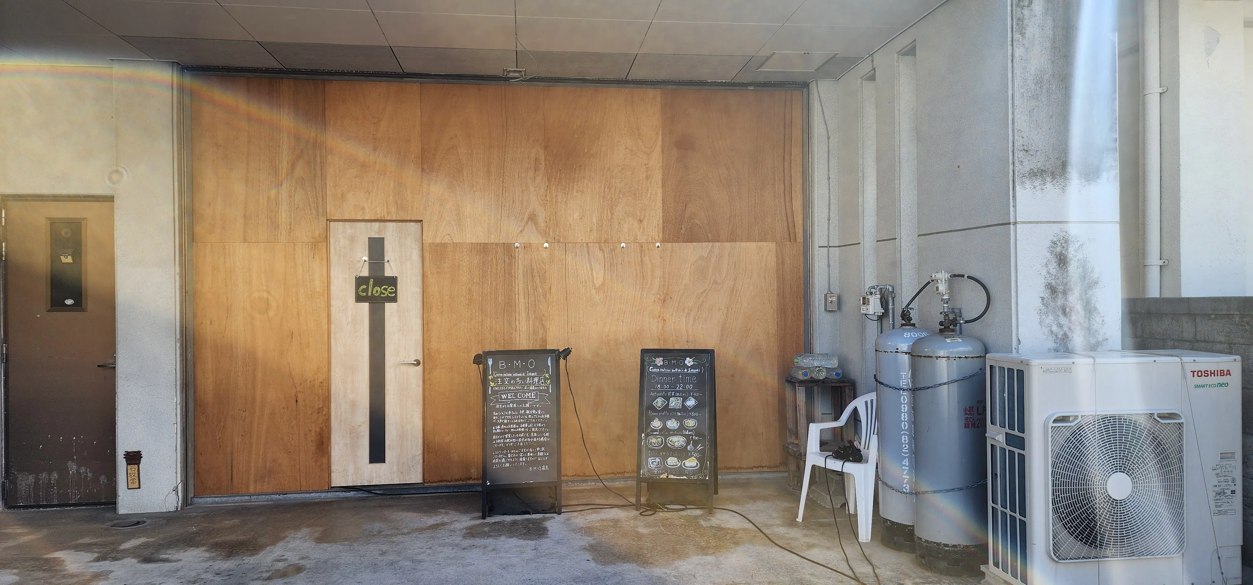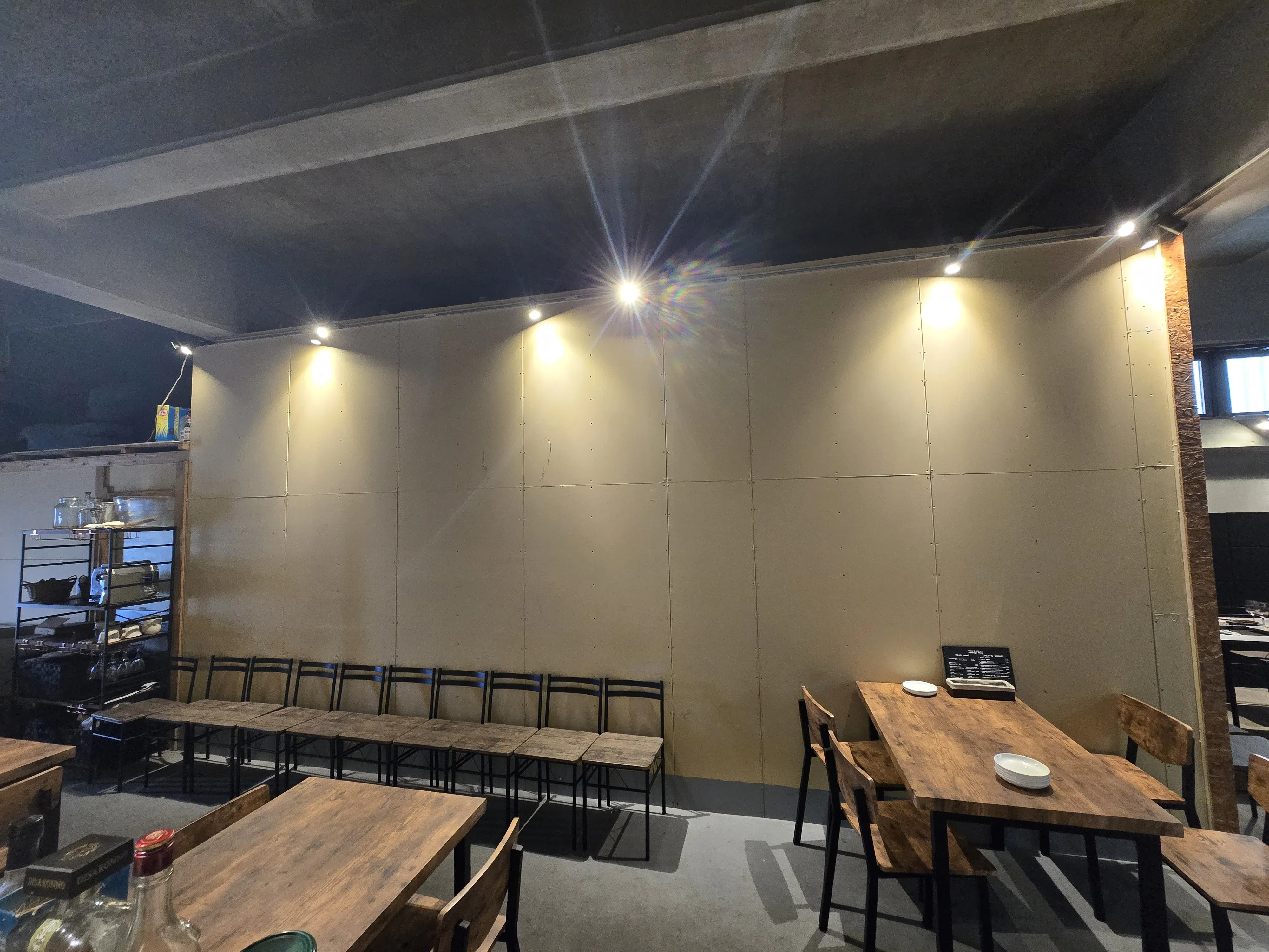 これらが通れば、ベニヤ板の入り口がレストラン店舗としての設えになり、カウンターを設置して1名様が使いやすい様に変わります。