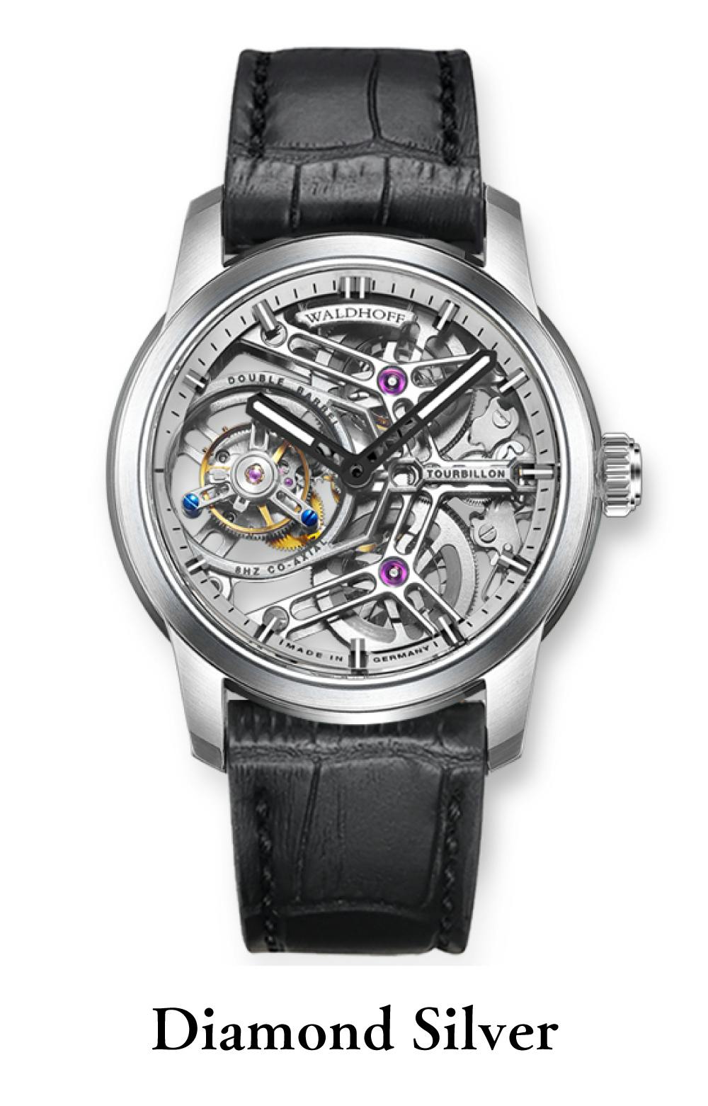 WALDHOFFではトゥールビヨンのムーブメントに、世界的に定評があるHZリリーズを採用し、手巻き式として自社でカスタマイズしています。