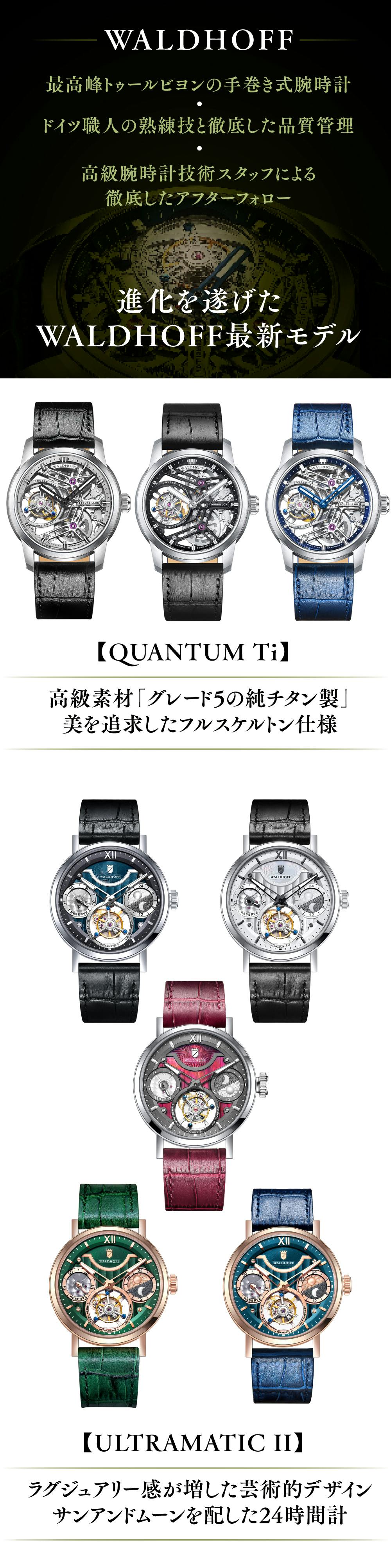 [QUANTUM Ti]と[ULTRAMATIC II ]は前回大好評を頂いた、ドイツ製トゥールビヨンの最高峰WALDHOFFの「進化版モデル」です。