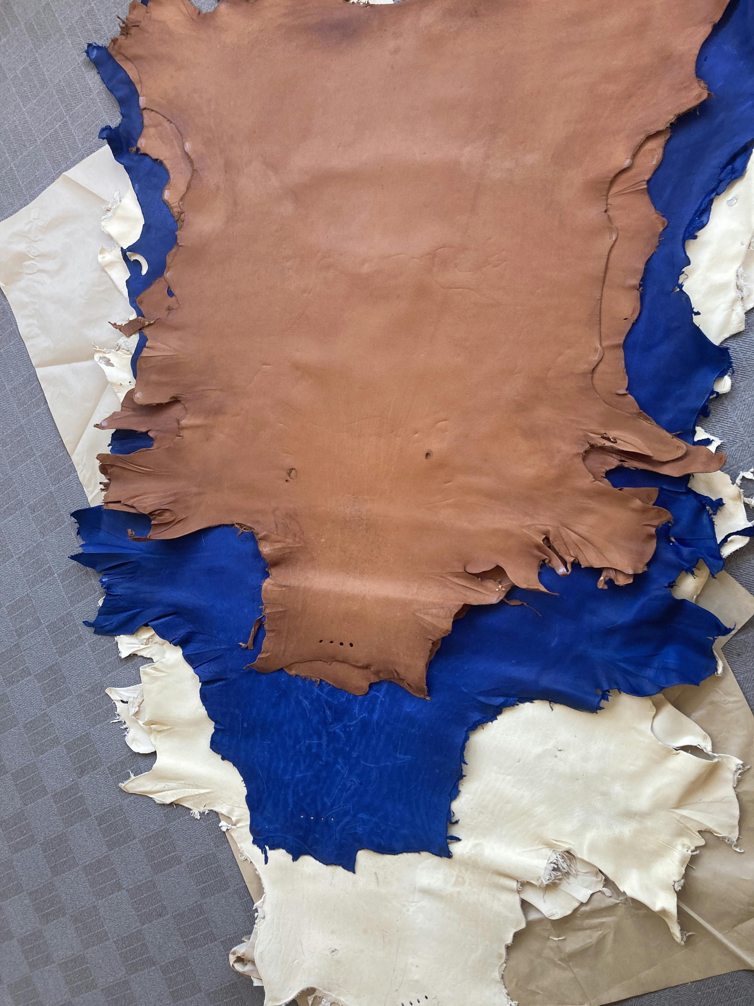 11月上旬に依頼していた鹿革(ネイビー/キャメル/ナチュラル)が、ようやく手元に届きました。富士山ジビエセンターDEARDEERさんから原皮を送っていただき、山口産業さんで丁寧に命を素材へと変えていただいたものです。