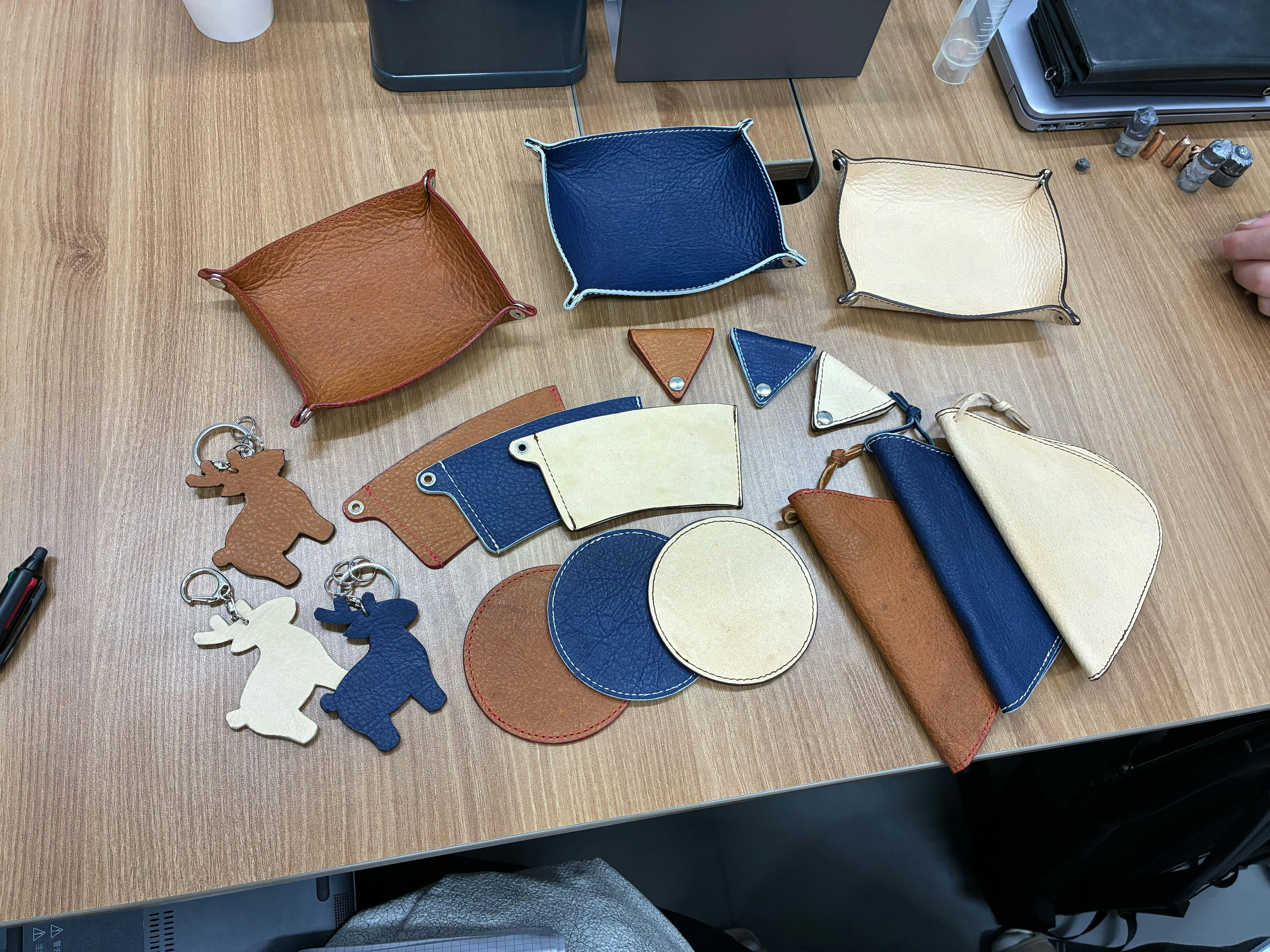 鹿革カップスリーブ・鹿革コースター・鹿革トレイ(いずれも3色展開)の中から お好きな3点を自由に組み合わせて選択 していただけます。