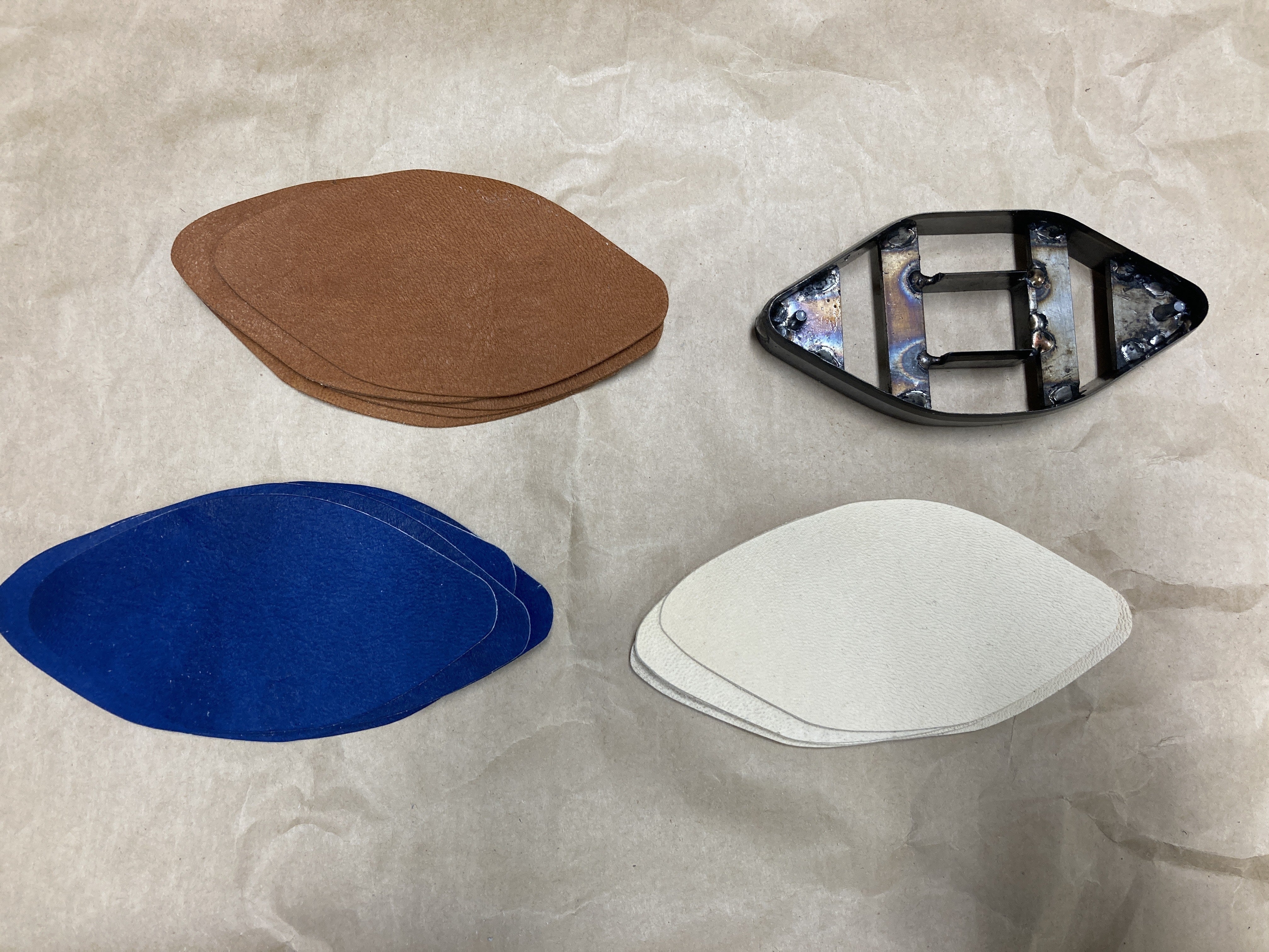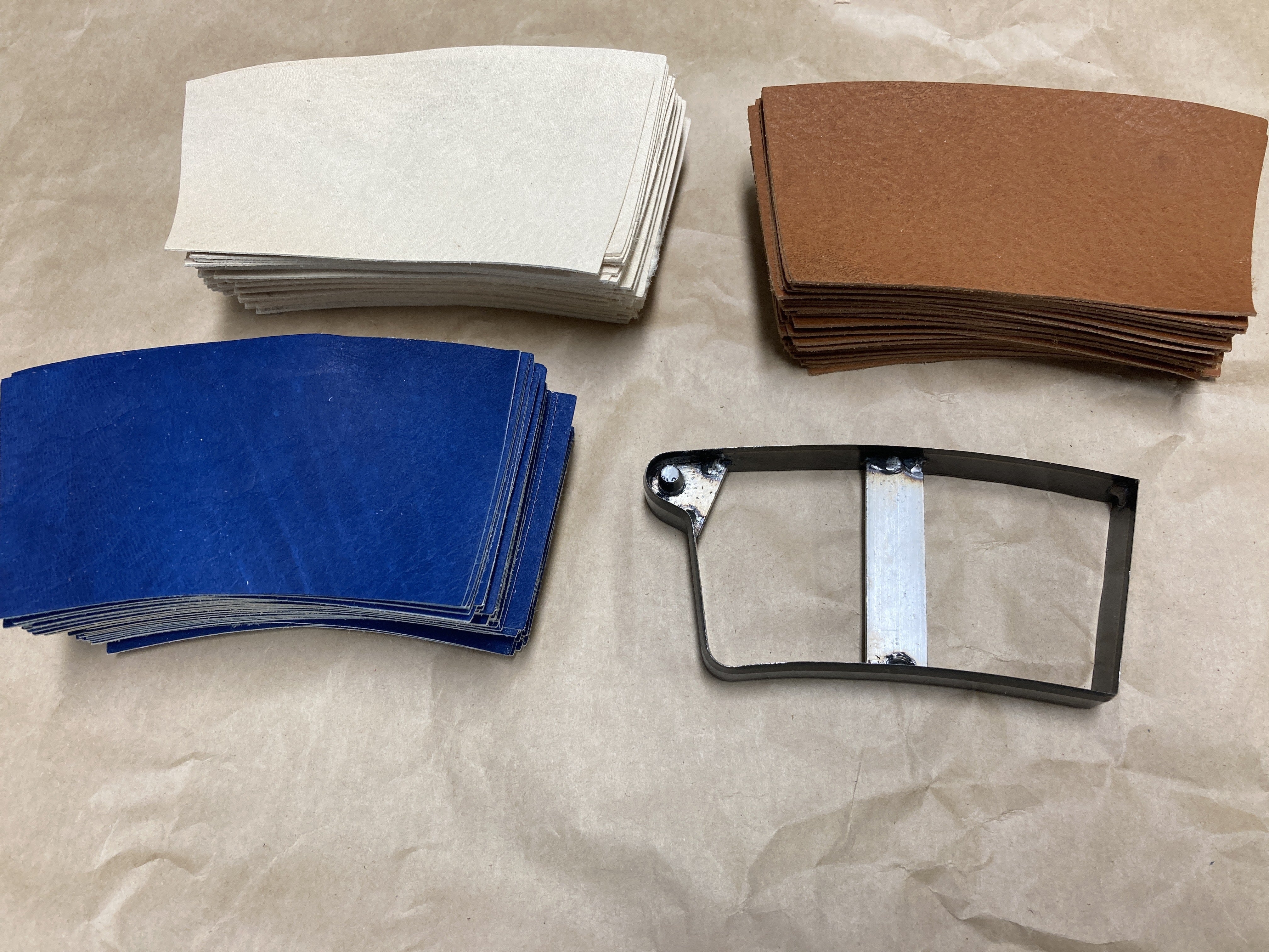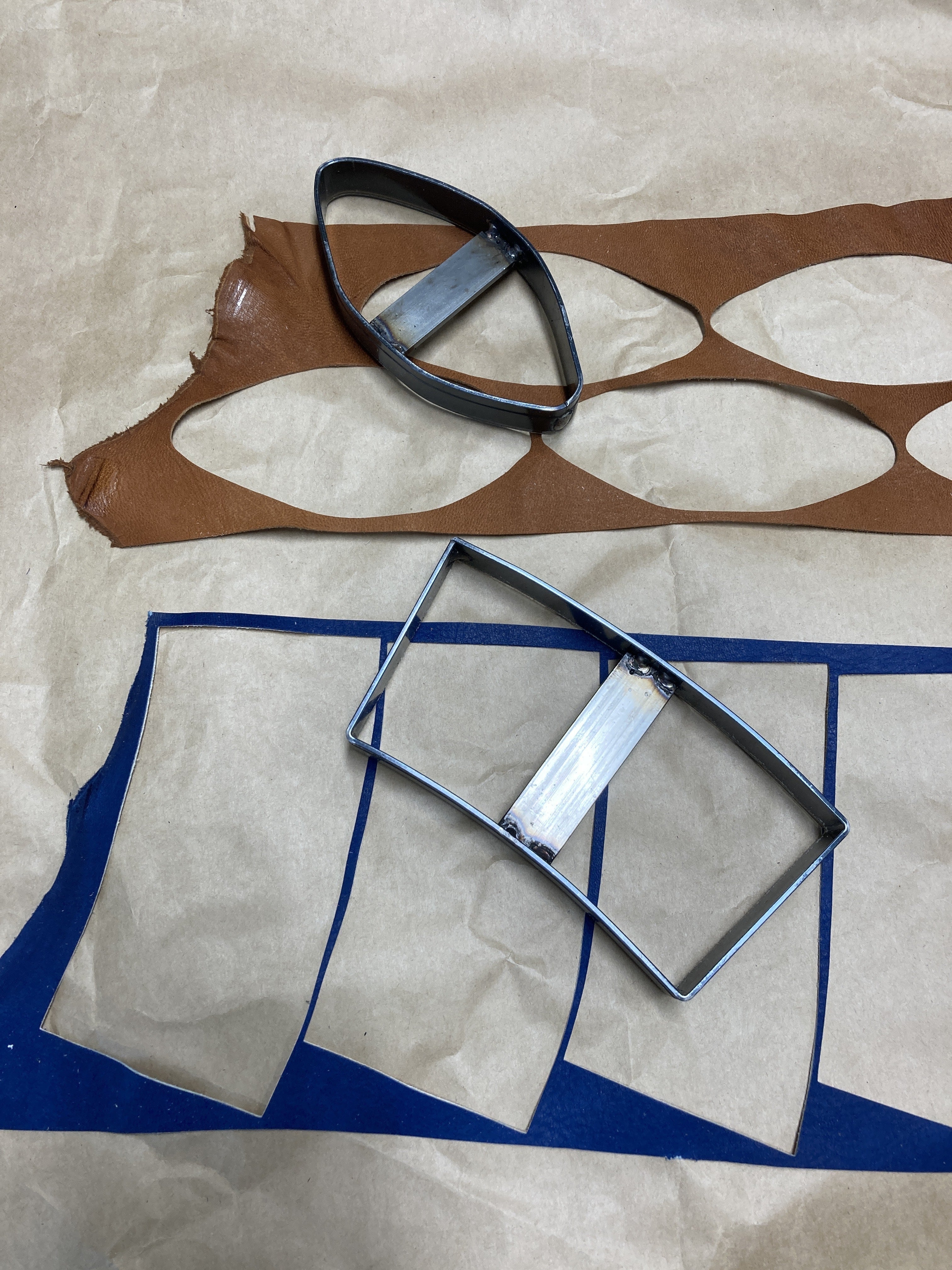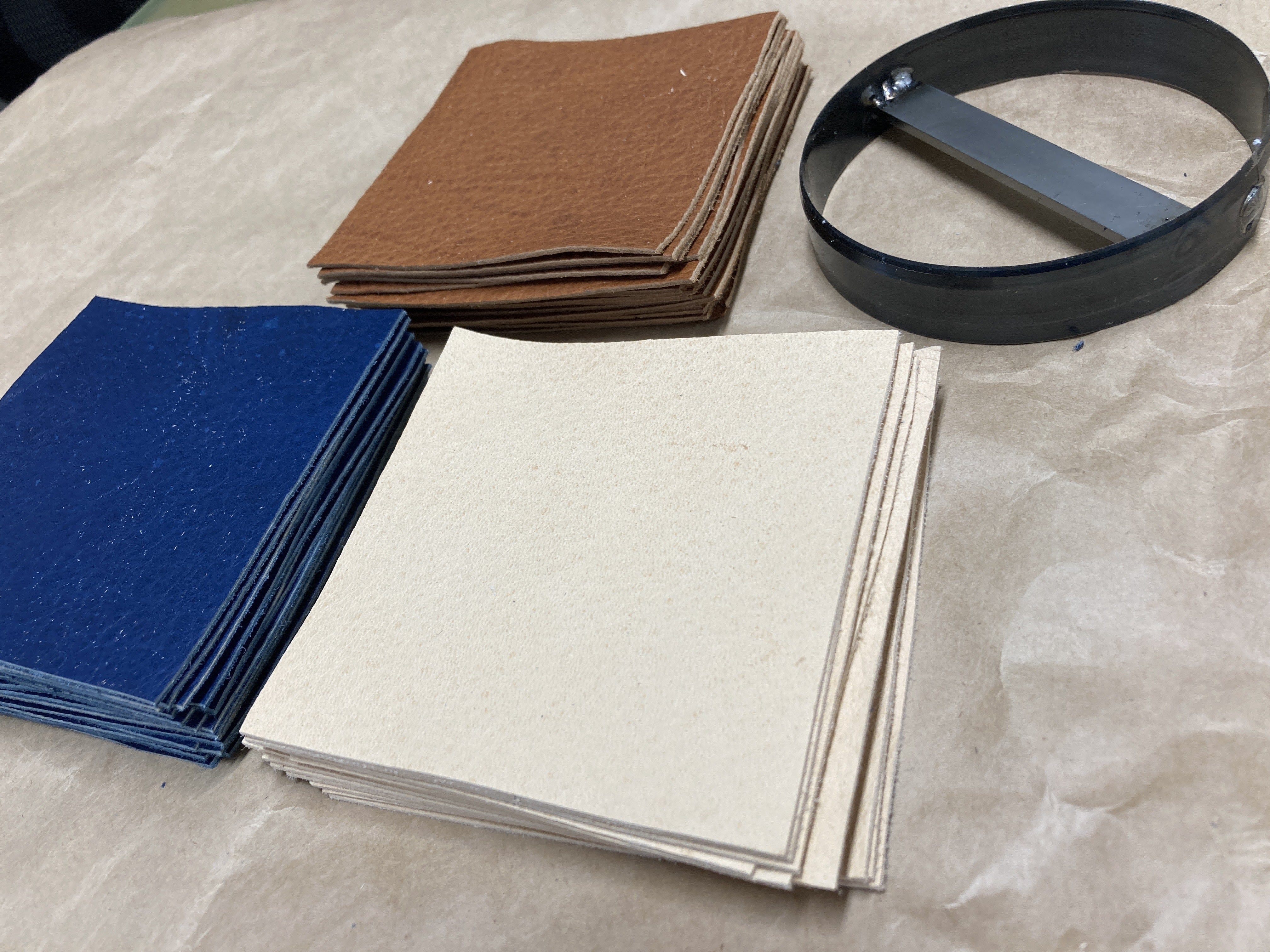 鹿革と抜型がそろい、アイテムの製作を進めています。