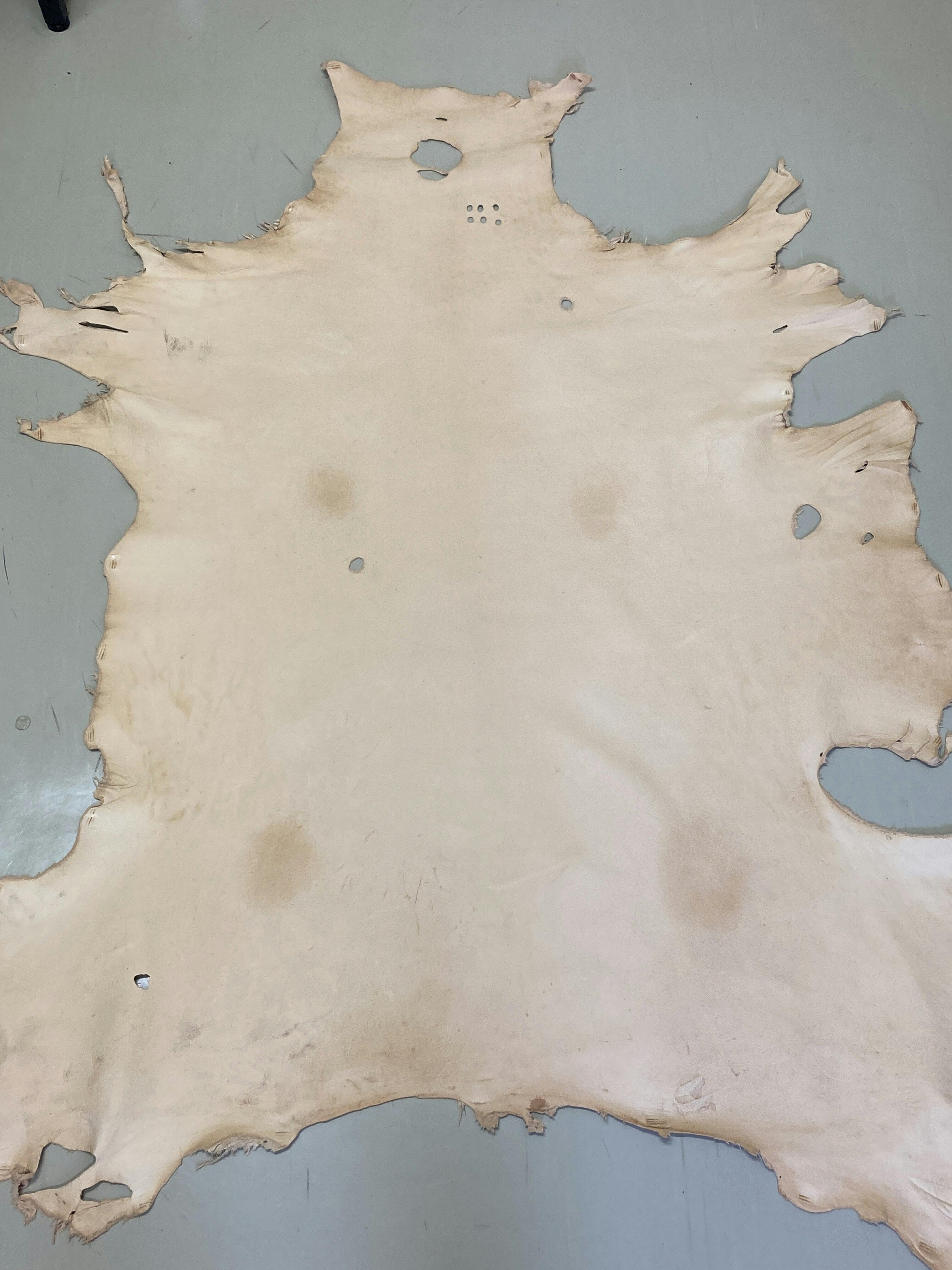 色はネイビー、キャメル、ナチュラルの3色展開。特にナチュラルは染色を施さず、鹿革そのものの自然な表情を残しました。ひとつとして同じものはなく、まさに世界に一つだけの逸品です。