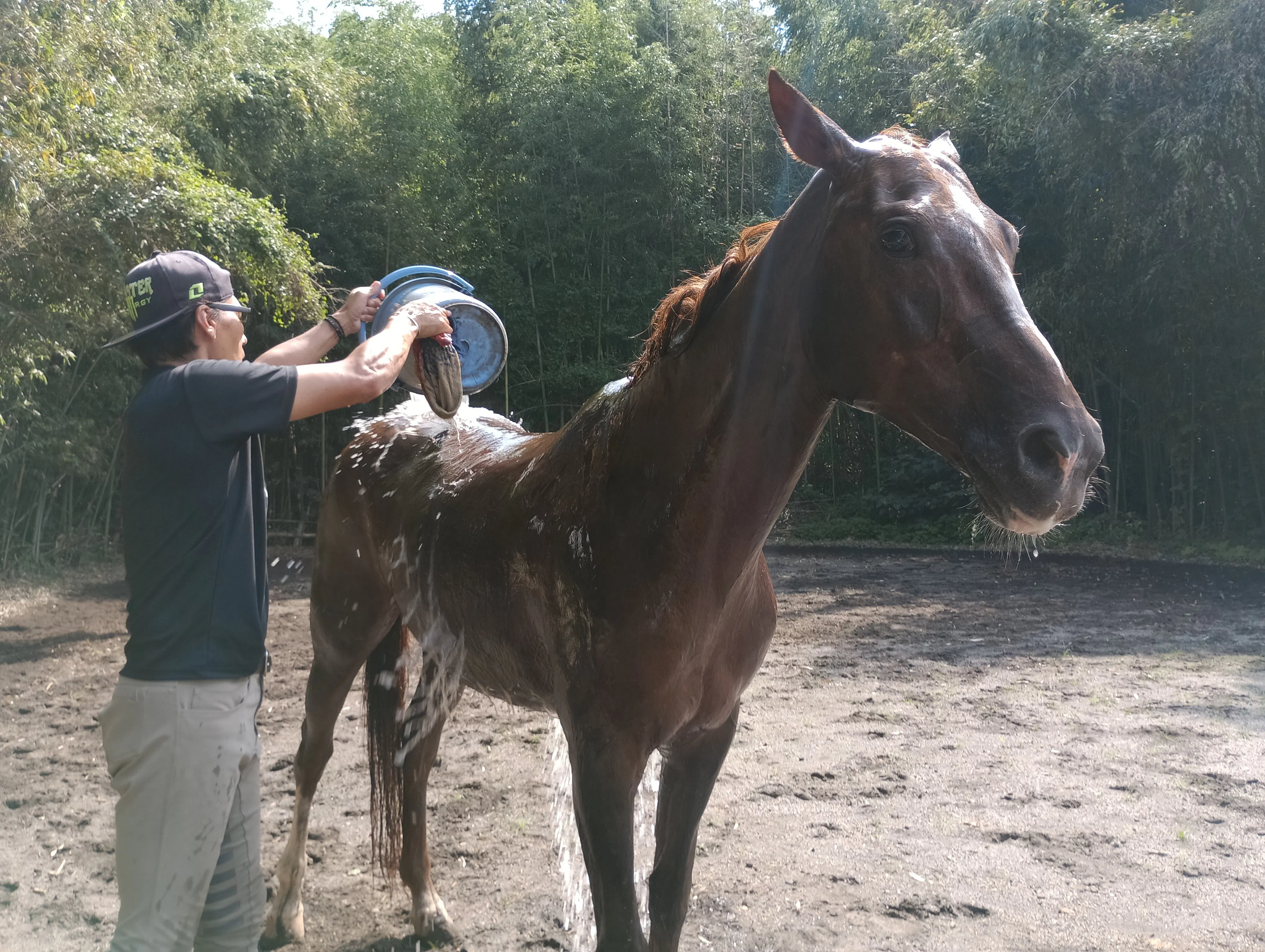 暑い夏も快適に過ごせるよういくつもの扇風機を設置し、厩舎内や洗い場もだいぶ快適に変わりました。ようやく私たち人間側もこの生活に慣れてきて、来場希望のお客様も少しづつ現れ、これから前を向いていこう、そう気持ちを取り戻していたこの矢先に、またもや私たちに試練が訪れました。