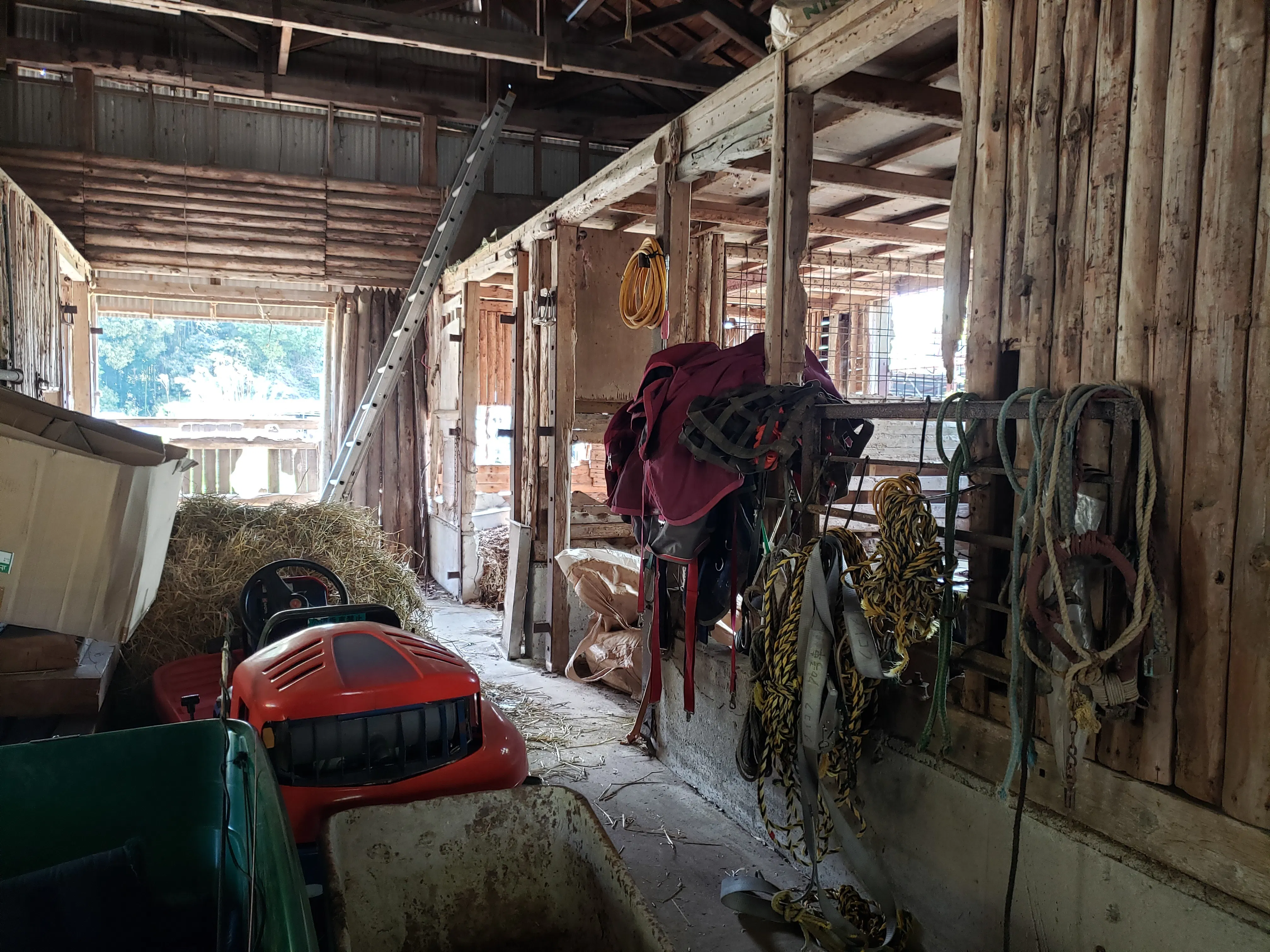 修繕により新しい木材と古い木材が混在する厩舎。それでもだいぶ快適になりました。