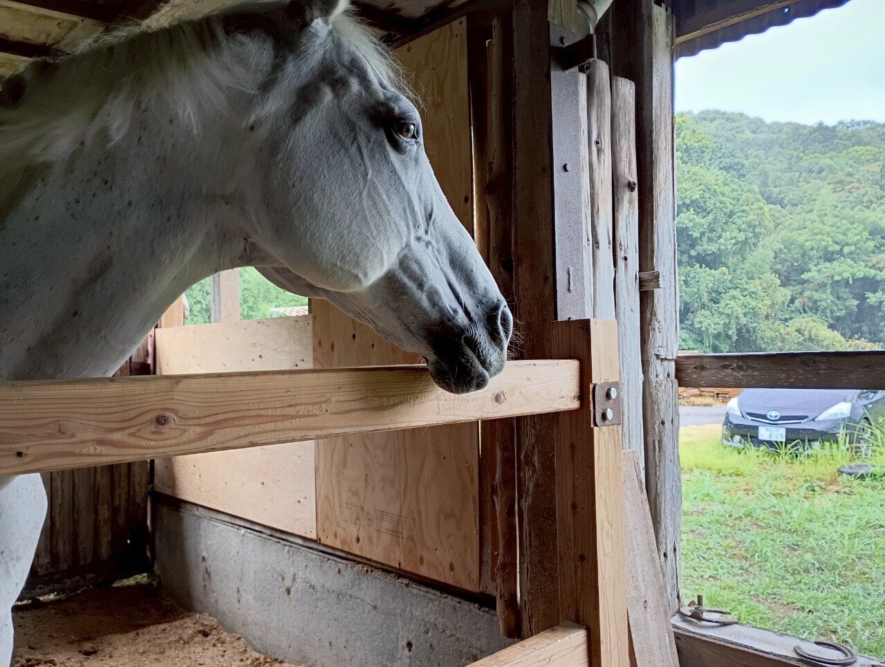 建物や設備は本当に古いけれど、直接自然を感じられる古い馬小屋は馬にとってはある意味快適な様子です。お借りする予定だった場所は立派な馬房だったけれど、馬たちはその頃より熊本に移ってからの方が性格ものんびりになり、表情もおだやか、なんだか生き生きとした様子になりました。