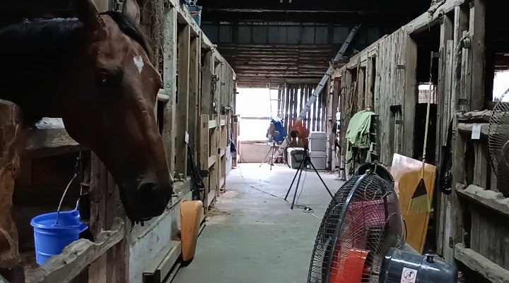 修繕により新しい木材と古い木材が混在する厩舎。それでもだいぶ快適になりました。