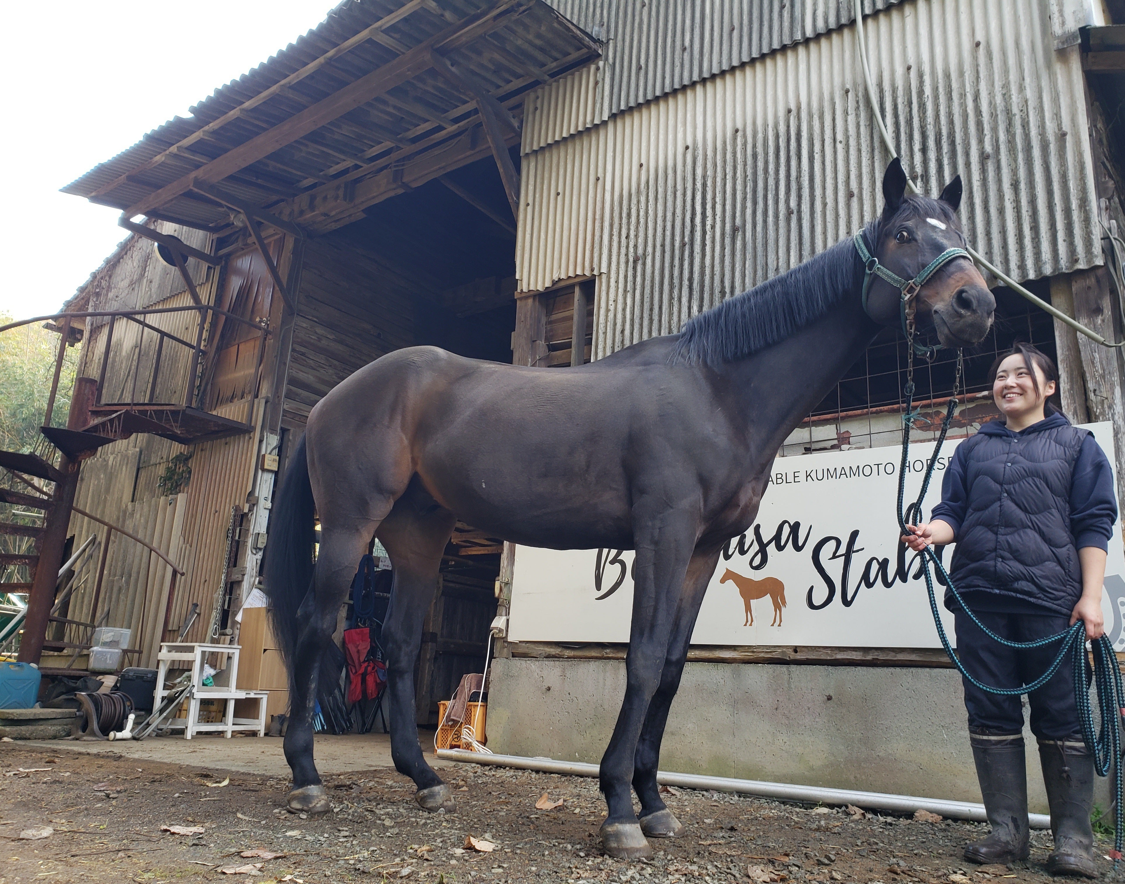 熊本県は馬術部がある高校の数が日本国内で一番多い県であり、競馬界や馬術界への未来を望む若い世代も多い環境であるのに、就職先となる乗馬クラブなどは九州全土でもそんなに多くはありません。観光牧場等では引退競走馬のようなサラブレッドではない品種が使われることがほとんどなので、バンブーサステーブルは小さなクラブではありますが、こうして引退競走馬が再び新しい馬生を歩める環境づくりをおこなっていくのは非常に意味のある活動と考えます。