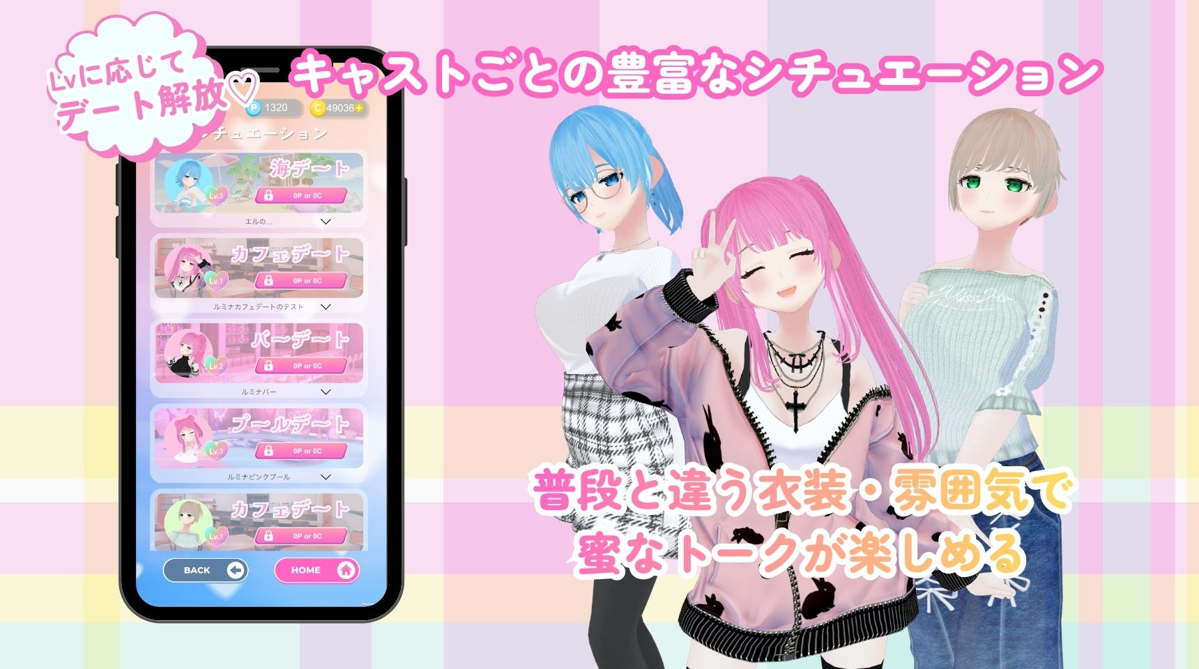 同様にエル/ルミナ/セレナそれぞれ3種類のデートシチュエーション、普段の会話とは違う距離感や演出でのトーク体験が完成しました。
