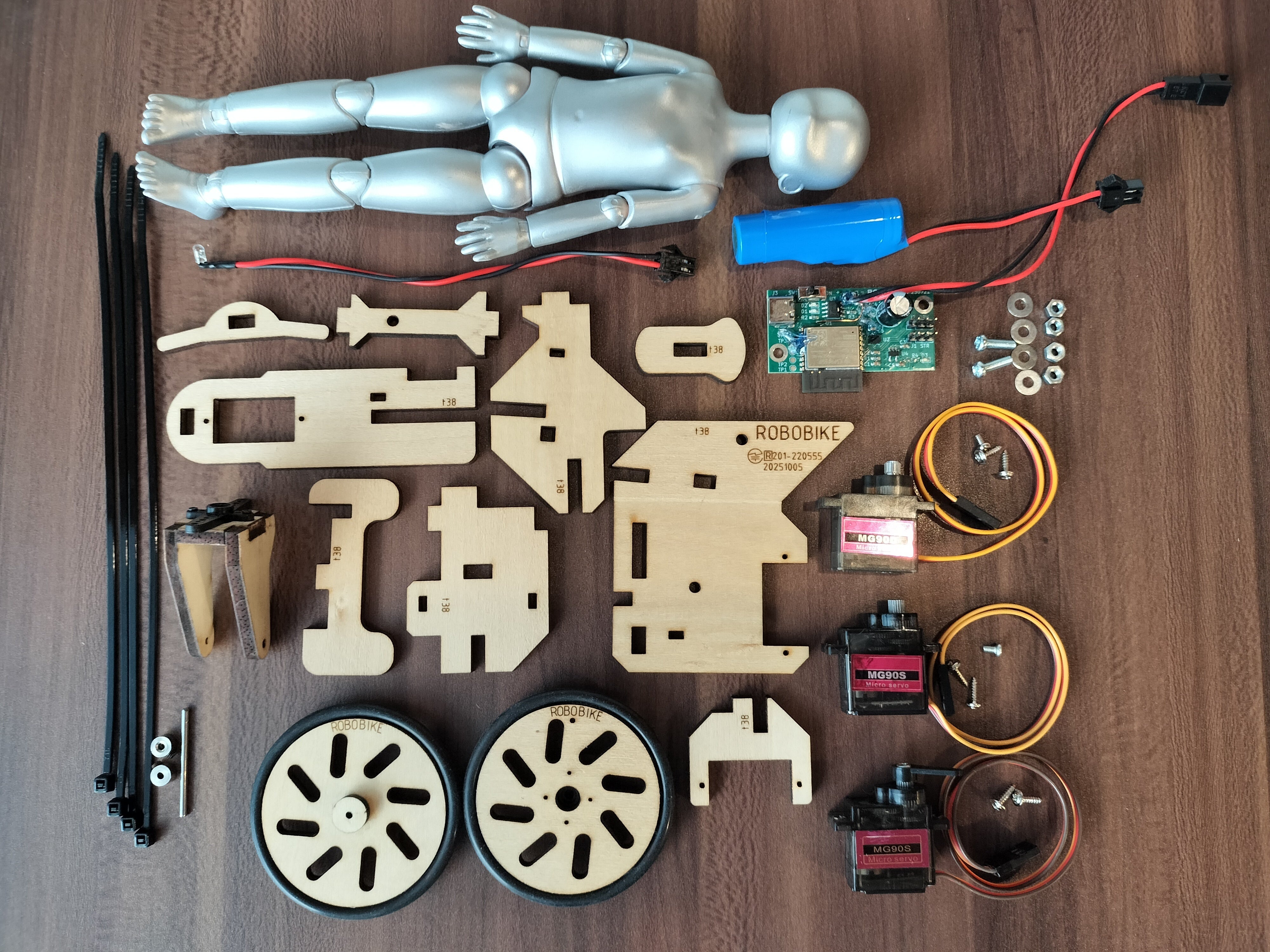 接着剤とドライバー等の簡単な工具があれば、1〜2時間程度で完成します。また図解付きのマニュアルをこちらのWEBページ→ https://robobikejp.com から提供いたします。