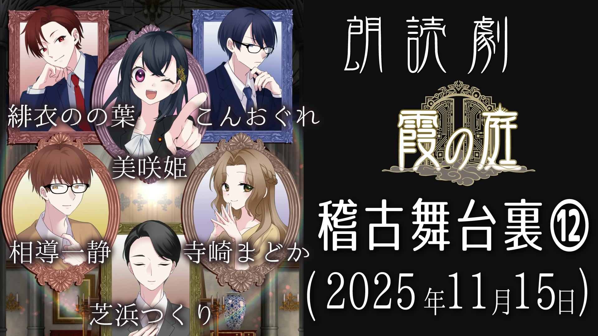 2025/11/21 18:40すみませんこちらに告知できていませんでした!⑪朗読劇『霞の庭』ボイスしおり収録(メイキング)動画が完成いたしました!よろしくお願いします! もっと見る