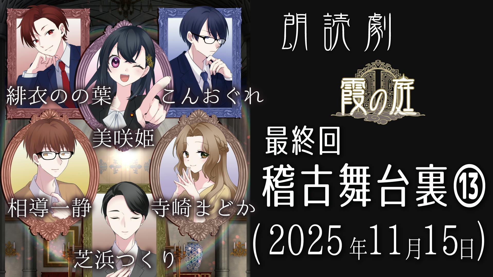 2025/11/21 18:40すみませんこちらに告知できていませんでした!⑪朗読劇『霞の庭』ボイスしおり収録(メイキング)動画が完成いたしました!よろしくお願いします! もっと見る