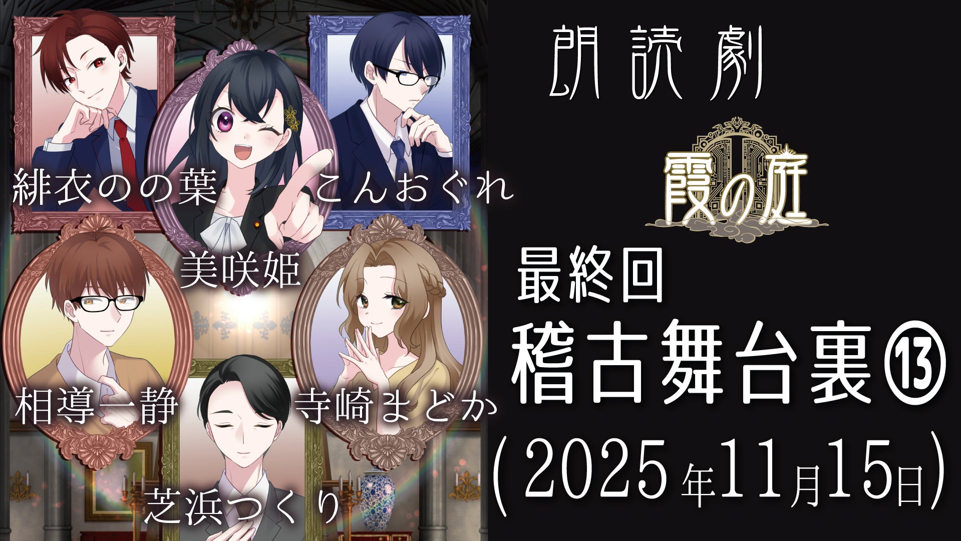 2025/11/21 18:40すみませんこちらに告知できていませんでした!⑪朗読劇『霞の庭』ボイスしおり収録(メイキング)動画が完成いたしました!よろしくお願いします! もっと見る