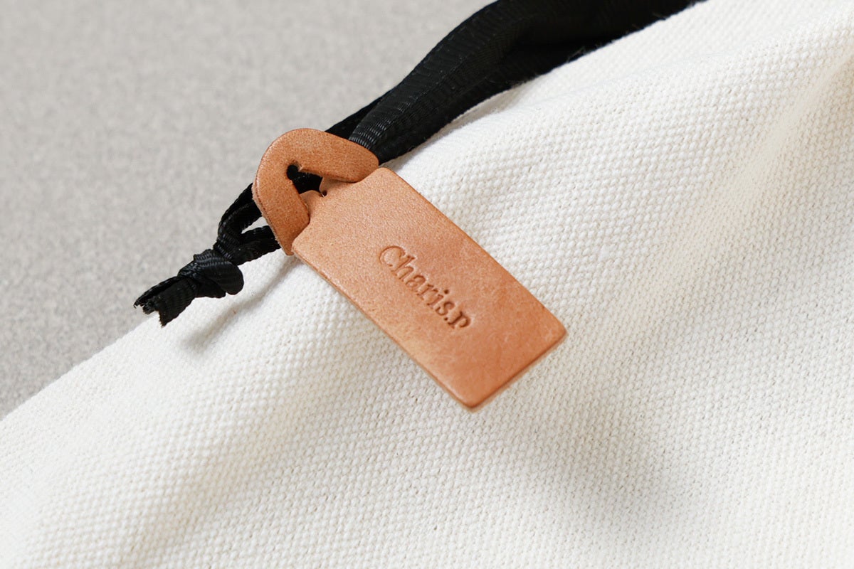 バッグと同じ「マヤレザー」のタグをあしらった、