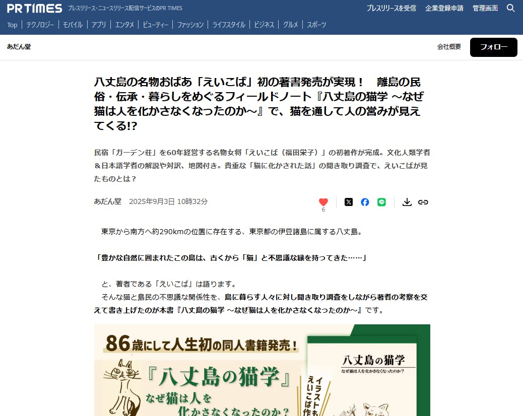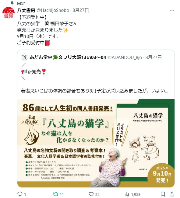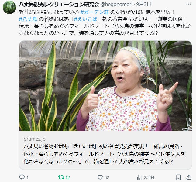 ・八丈島の名物おばあの担当になって2年!島猫文化聞き取り調査本がついに発売!(あだん堂が担当編集者に選ばれた経緯やその後の流れをまとめたnote記事)