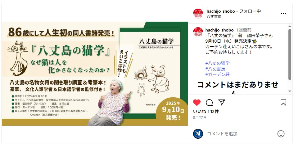 あだん堂が関わる同人誌をいつも注文&置いてくださっている稀有な八丈島内の書店「八丈書房」さん。今回は特に八丈島の書籍ということで、様々な媒体に情報を転載くださっています! ありがとうございます!