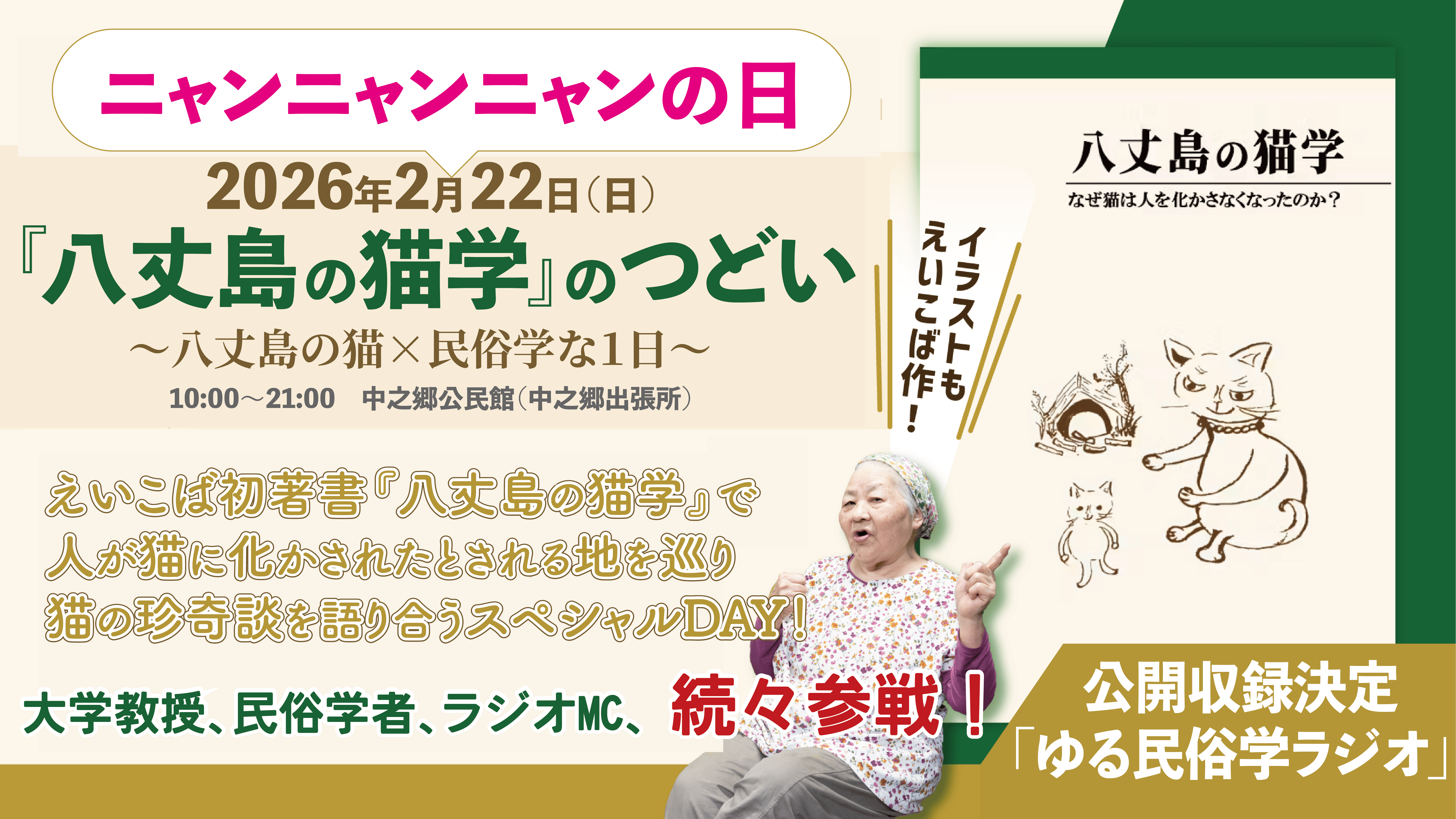 また、2月22日(日)に八丈島で開催されるイベントの告知もされ、島内外問わず猫&民俗学好きが集まる猫の日にふさわしい会となる予感。