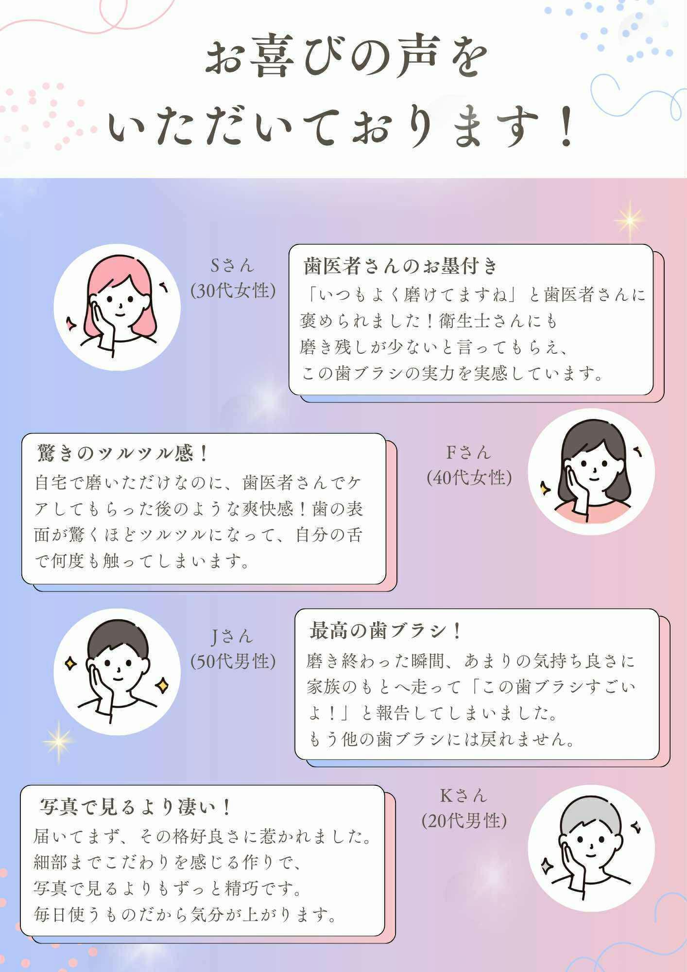そして、導入のきっかけのほとんどが、「奇跡の歯ブラシ」を使い始めた患者様の口内をみて、これは凄いと歯科医院の方から直接お問い合わせを頂きました!