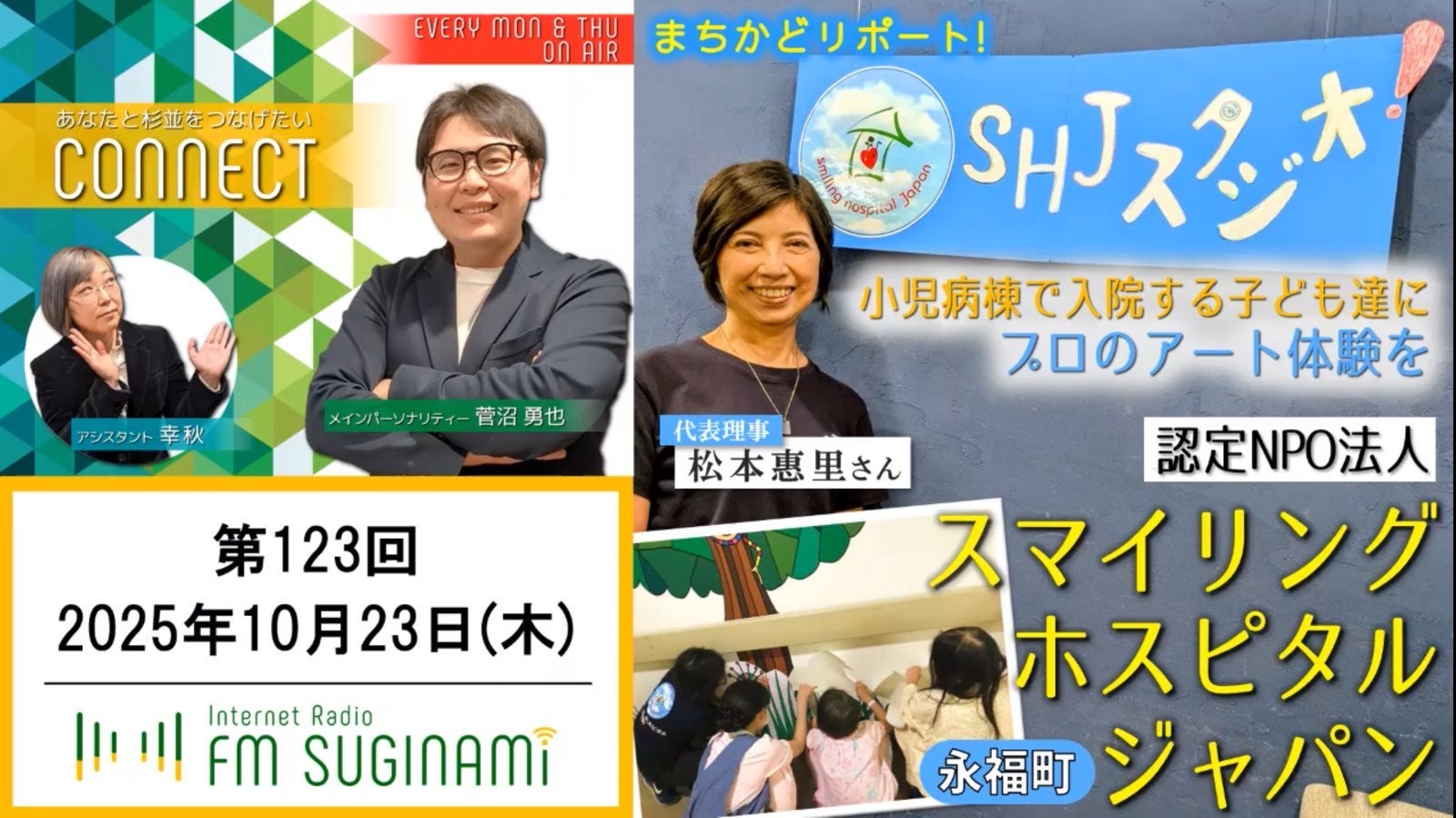 さて代表 松本恵里がFM杉並に出演、「闘病中の子どもたちにアートを届ける活動」について、また、挑戦中の「小児病棟にウォールアートを届けるためのクラウドファンディング」についてインタビューを受け、語っています。