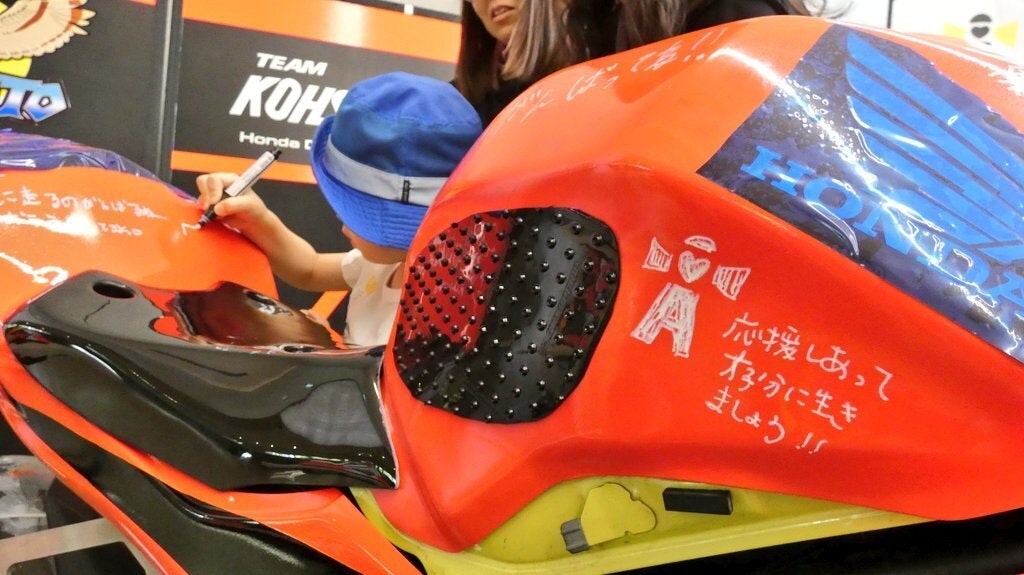 そこで今年より難病と闘うこども達とその兄弟や家族が今を存分に生きる為に愛知県にこどもホスピスを設立しようと活動されている、NPO法人愛知こどもホスピスプロジェクト様と協力し「Lap with you project」というプロジェクトを立ち上げました。このプロジェクトは、私がサーキットを1周走るごとに10円をNPO法人愛知こどもホスピスプロジェクト様に寄付したり、レースに参戦する実際のバイクにメッセージを描いてもらいレースへ参戦。またサーキットへ招待するものです。