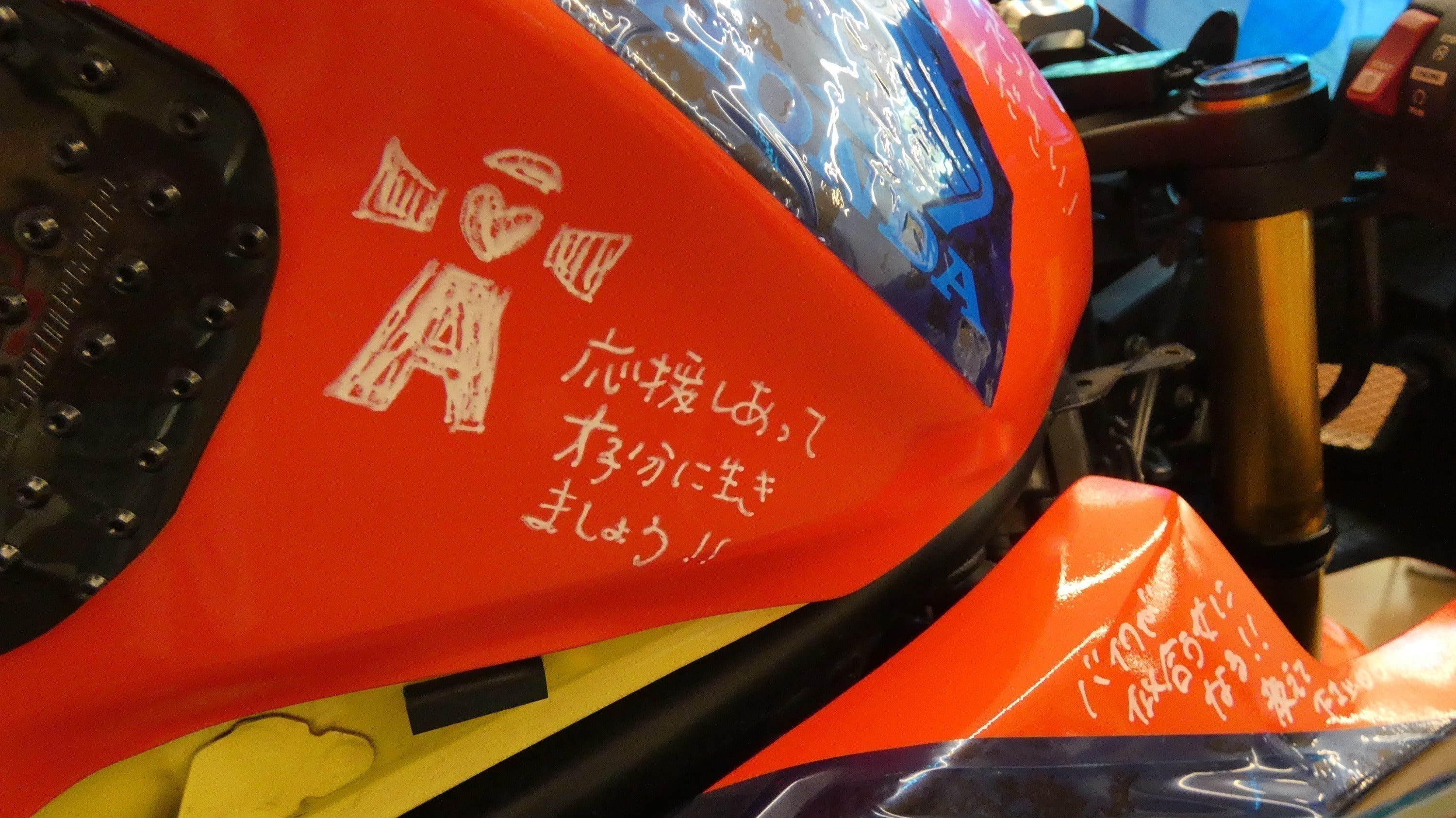 特にこどもホスピスのみんなのメッセージが描いてあるバイクに名前を入れることは、とても大きな意味を持つと考えています。